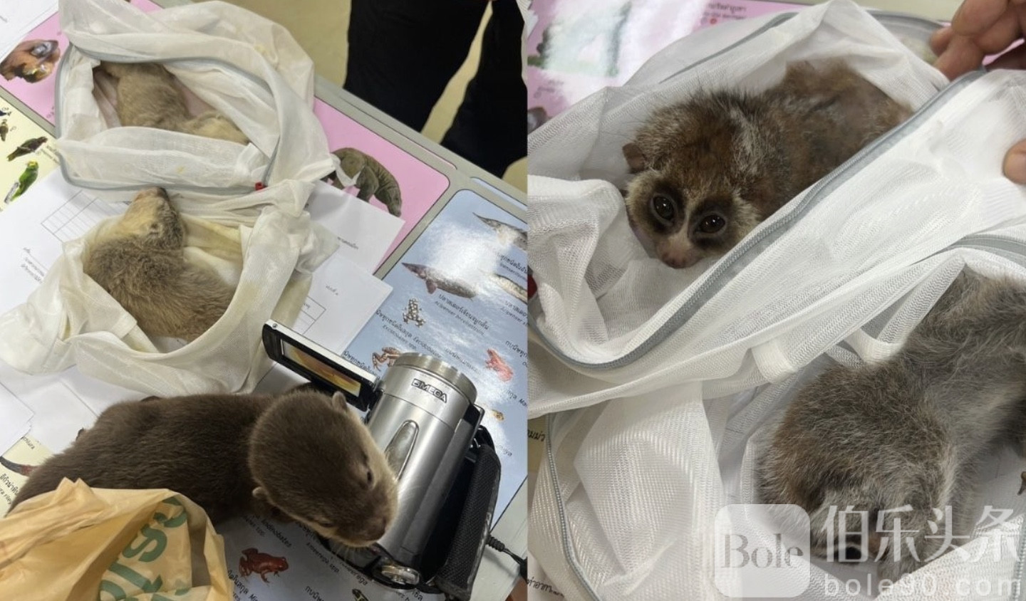 伯乐头条专讯:泰国机场再爆离奇案件!10月7日凌晨,一名54岁台湾男子在曼谷廊曼国际机场(Don Mueang Airport)准备搭乘飞往高雄的航班时,被安检X光扫描发现异常,结果竟从他衣服里搜出8只活体动物,包括两只懒猴、一只松鼠、三只水獭和两只亚洲盒龟,场面让工作人员都惊呆了。