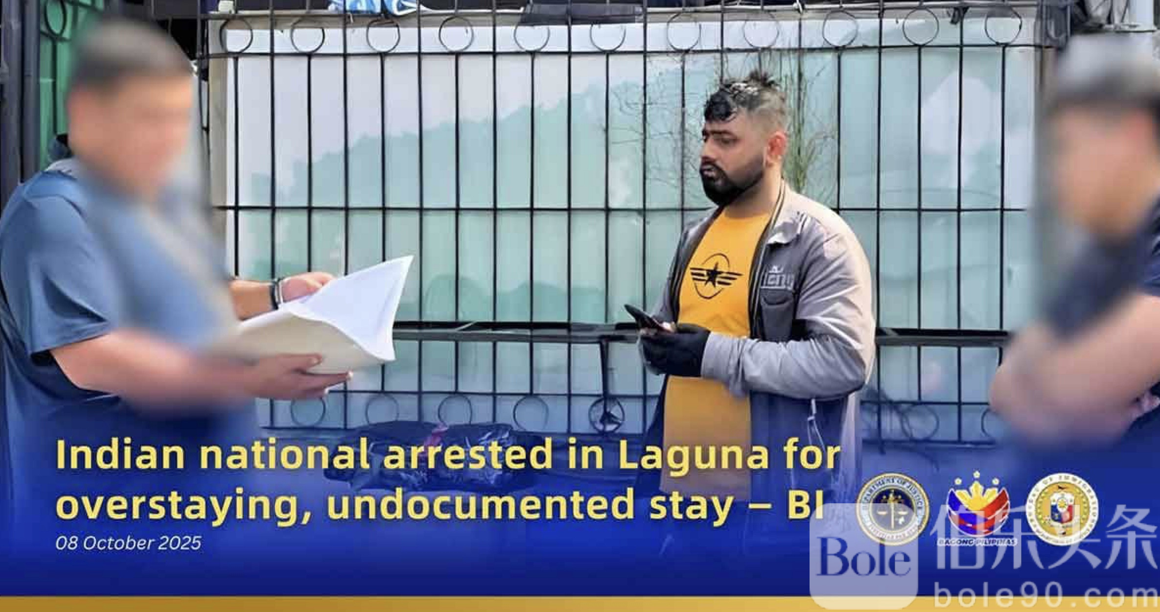 伯乐头条专讯:菲律宾移民局再度展开突袭行动,在拉古纳省圣罗莎市抓获一名非法滞留的印度籍男子。该男子因逾期居留、无证滞留被当局拘捕,正等待遣返出境。