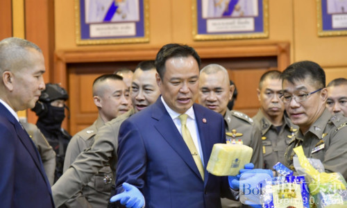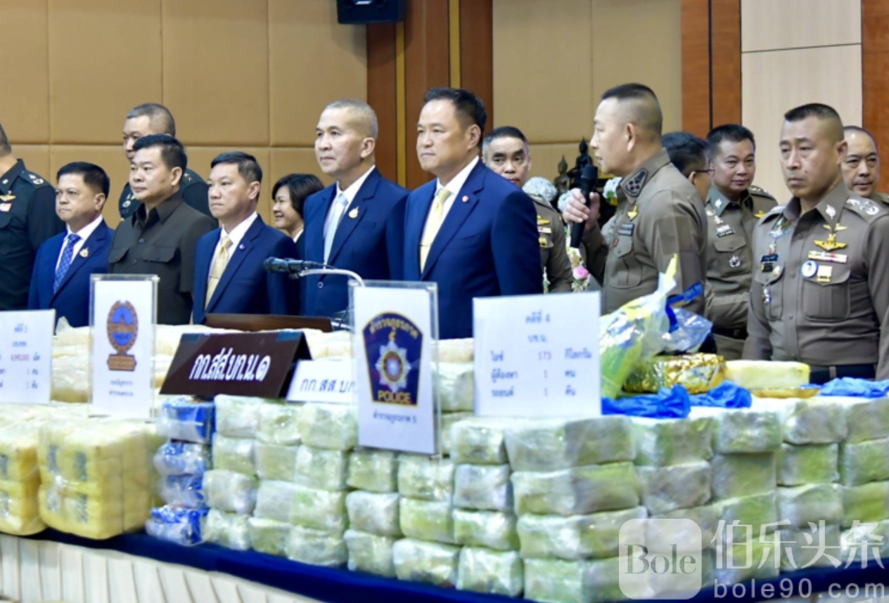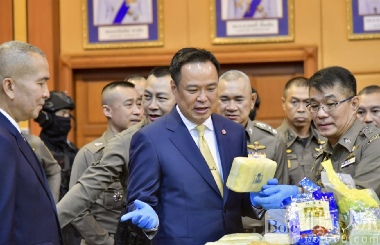 伯乐头条专讯:泰国总理兼内政部长阿努廷·昌维拉孔近日与司法部长及警方高层联合召开新闻发布会,通报跨省毒品扫荡行动成果。在10月4日至6日期间,泰国国家警察局展开大规模行动,共破获4起重大毒品案件,抓获犯罪嫌疑人10名,缴获安非他命15.78万颗、冰毒235公斤,并冻结毒贩资产若干。