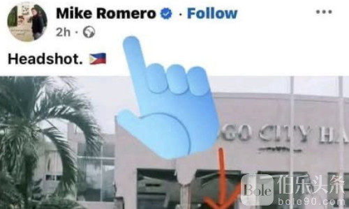 警方透露,这名男子名叫 Michael “Mike” Romero,他在 Facebook 上发布了一张菲律宾总统小马科斯的照片,并在画面中加上一个红色箭头指向总统头部,标题写着 “Headshot(爆头)”。
