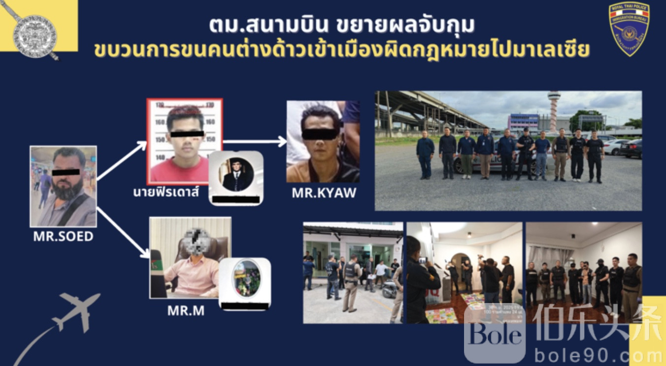 伯乐头条专讯:泰国移民局近日宣布成功捣毁两大跨国犯罪团伙,抓获多名涉及非法移民和伪造护照的嫌犯,行动震慑不法分子,保障国家安全与社会秩序。