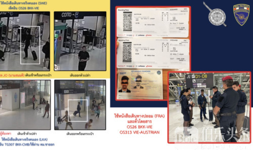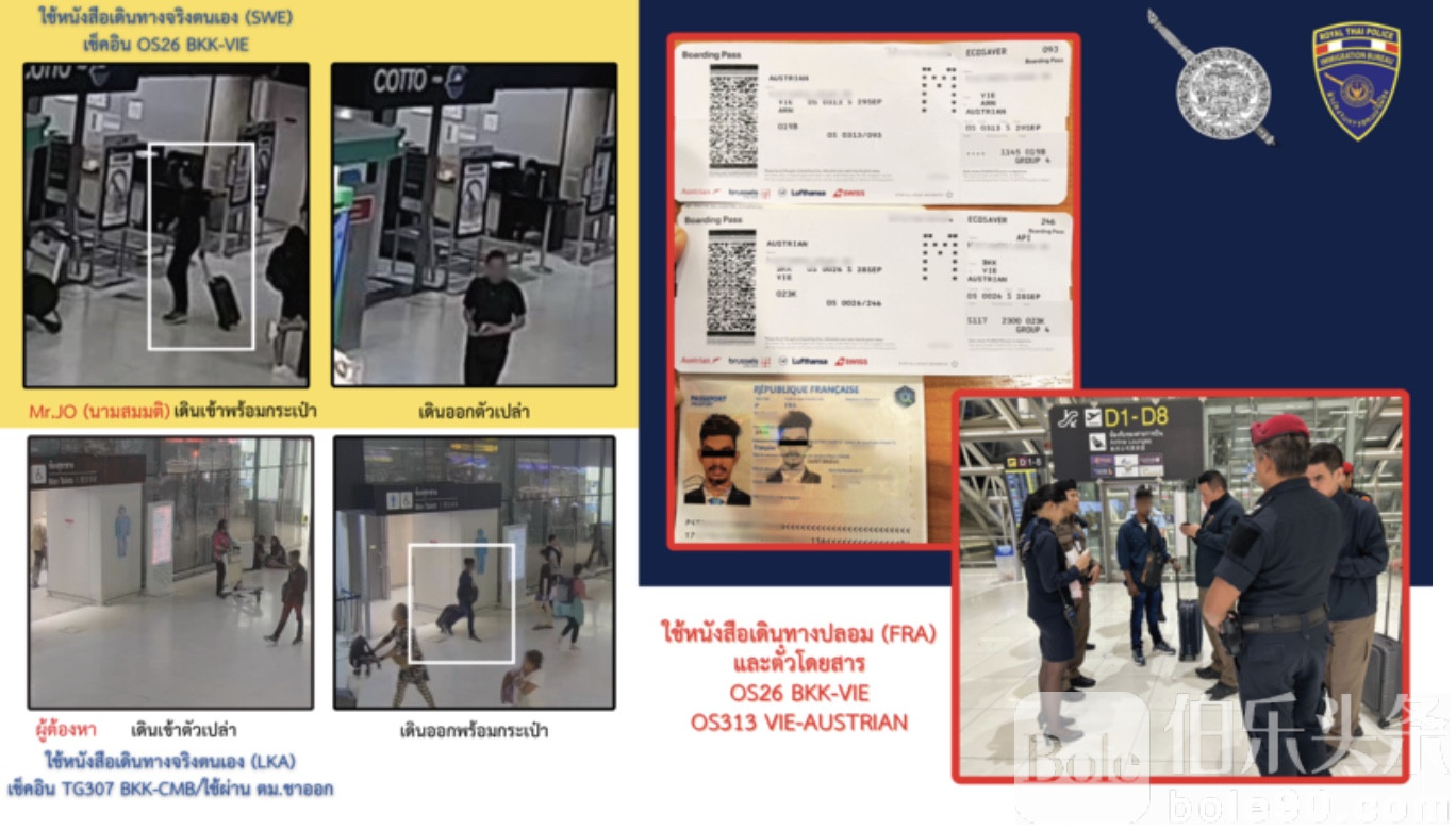 第二起案件涉及一名26岁斯里兰卡籍男子使用伪造法国护照试图飞往欧洲。警方通过长期监控,最终在素万那普机场及曼谷市区抓获其同伙Mr.Jo(瑞典籍、伊拉克混血),查获伪造护照及相关证件。调查显示,该犯罪网络长期为移民提供伪造证件,以便非法进入欧洲国家。