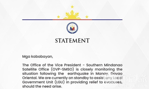 地震震中位于副总统萨拉·杜特尔特(Sara Duterte)政治大本营——南达沃地区。萨拉第一时间发声表示,其在南棉兰老的副总统办公室已“随时待命、准备提供援助”。她呼吁受灾群众保持冷静,尤其要关注儿童心理健康,携带应急包以防余震。