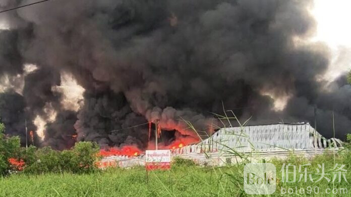 伯乐头条专讯:10月13日下午,泰国巴吞他尼府孔卢昂区发生严重火灾,多处家电仓库被大火吞噬。目前火势仍未完全受控。