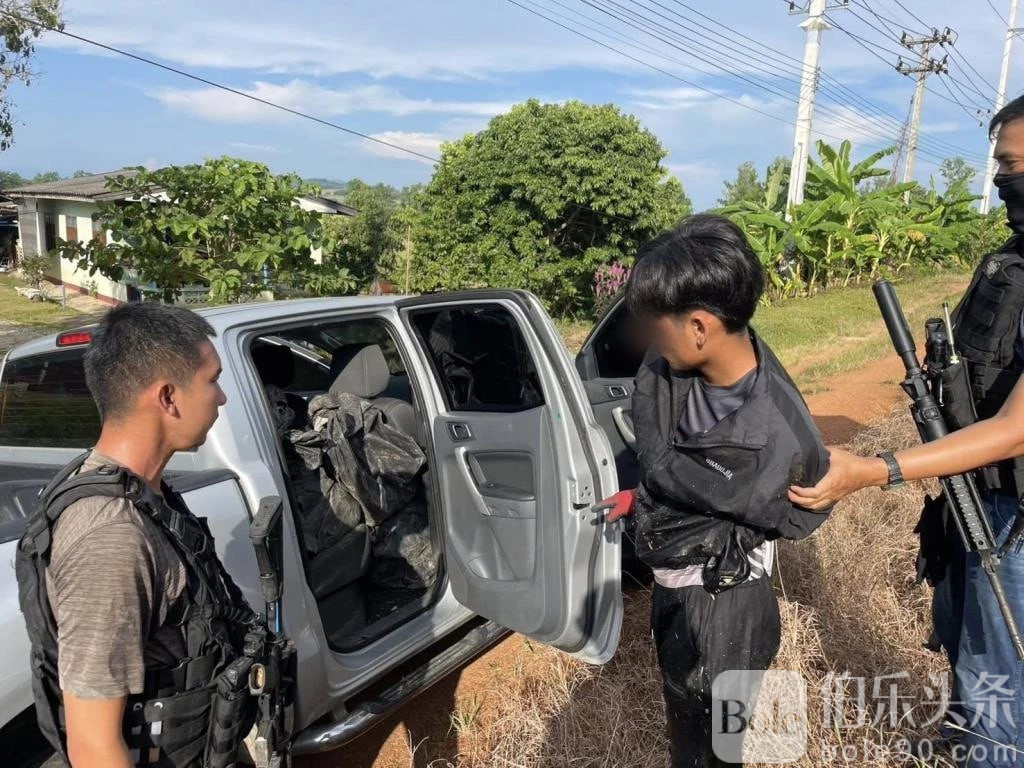 伯乐头条专讯:10月14日上午,泰国清莱省边境巡逻警察在追捕一伙毒贩时发生枪战,最终成功包围目标车辆,逮捕两名深夜驾驶皮卡车逃逸的毒品走私嫌疑人,并当场查获超过200万粒甲基苯丙胺(冰毒)药丸。