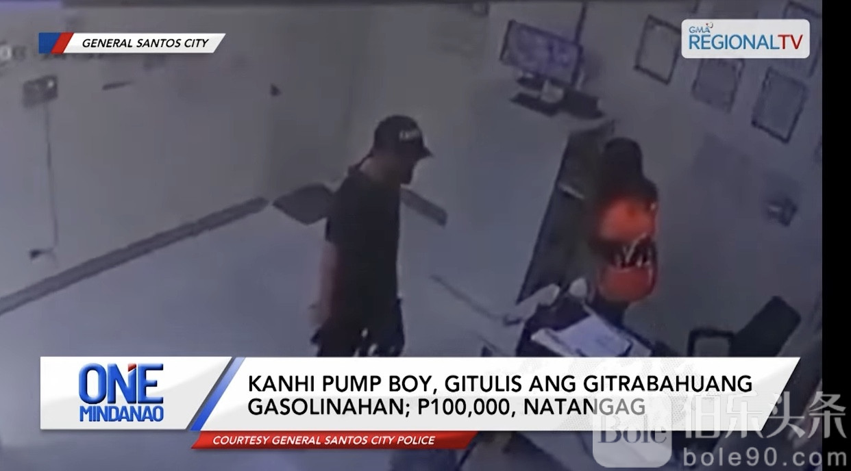 据GMA电视台报道,这起案件发生在10月14日深夜,将军市达迪昂阿斯北区(Barangay Dadiangas North)的一家加油站。监控画面显示,嫌犯手持枪支,命令一名女员工将柜台内的现金装入袋中,神情冷静、动作熟练。
