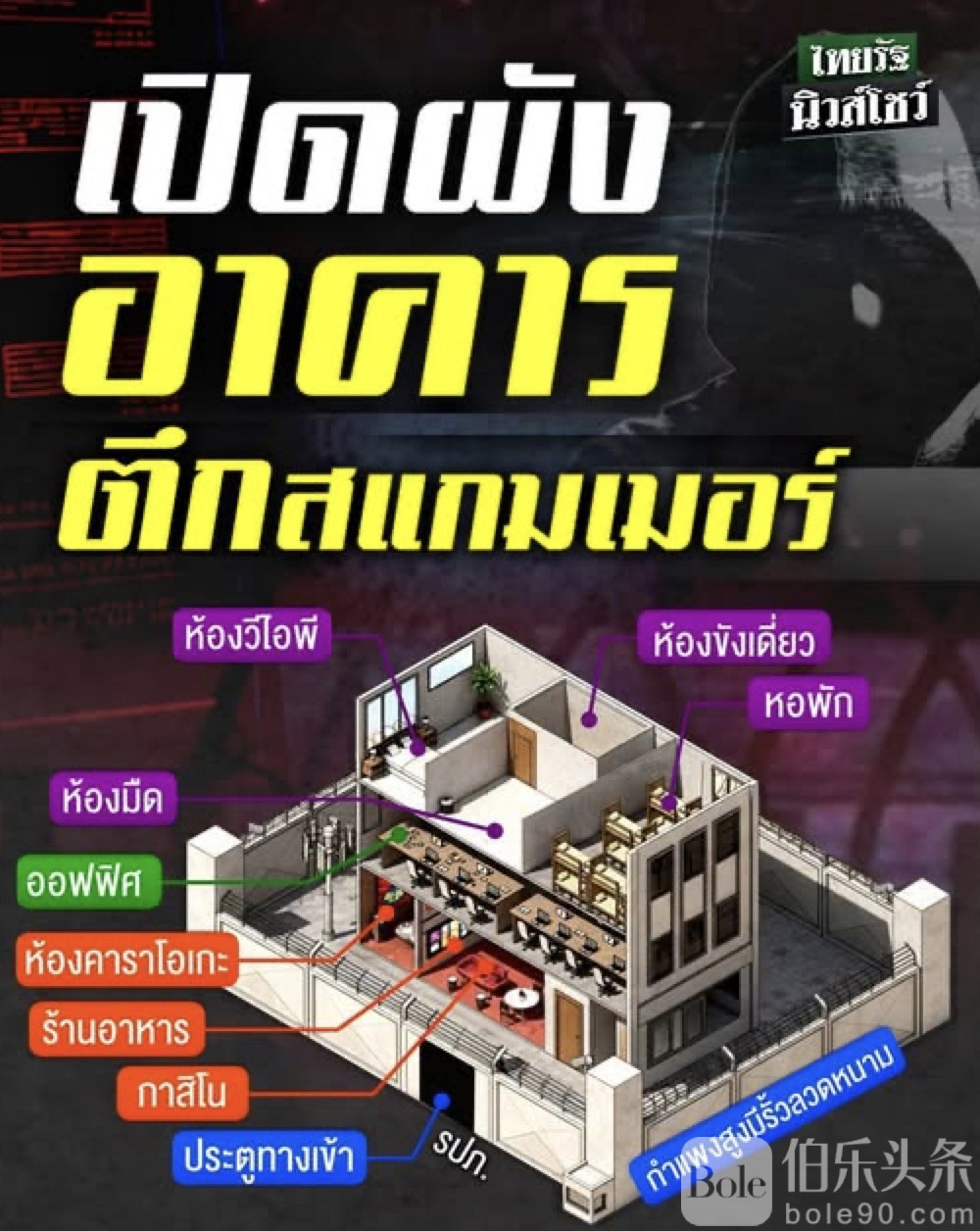 每栋建筑通常五层高,约120个房间,整个园区可容纳超过5,000名劳工或诈骗人员。大楼内设有餐厅、赌场、卡拉OK厅、办公室,甚至有黑屋与单人禁闭室,用于惩罚业绩不达标人员,还配备VIP房用于接待高层或权势人士。此次调查进一步揭露了柬埔寨诈骗集团的组织规模和管理残酷程度。