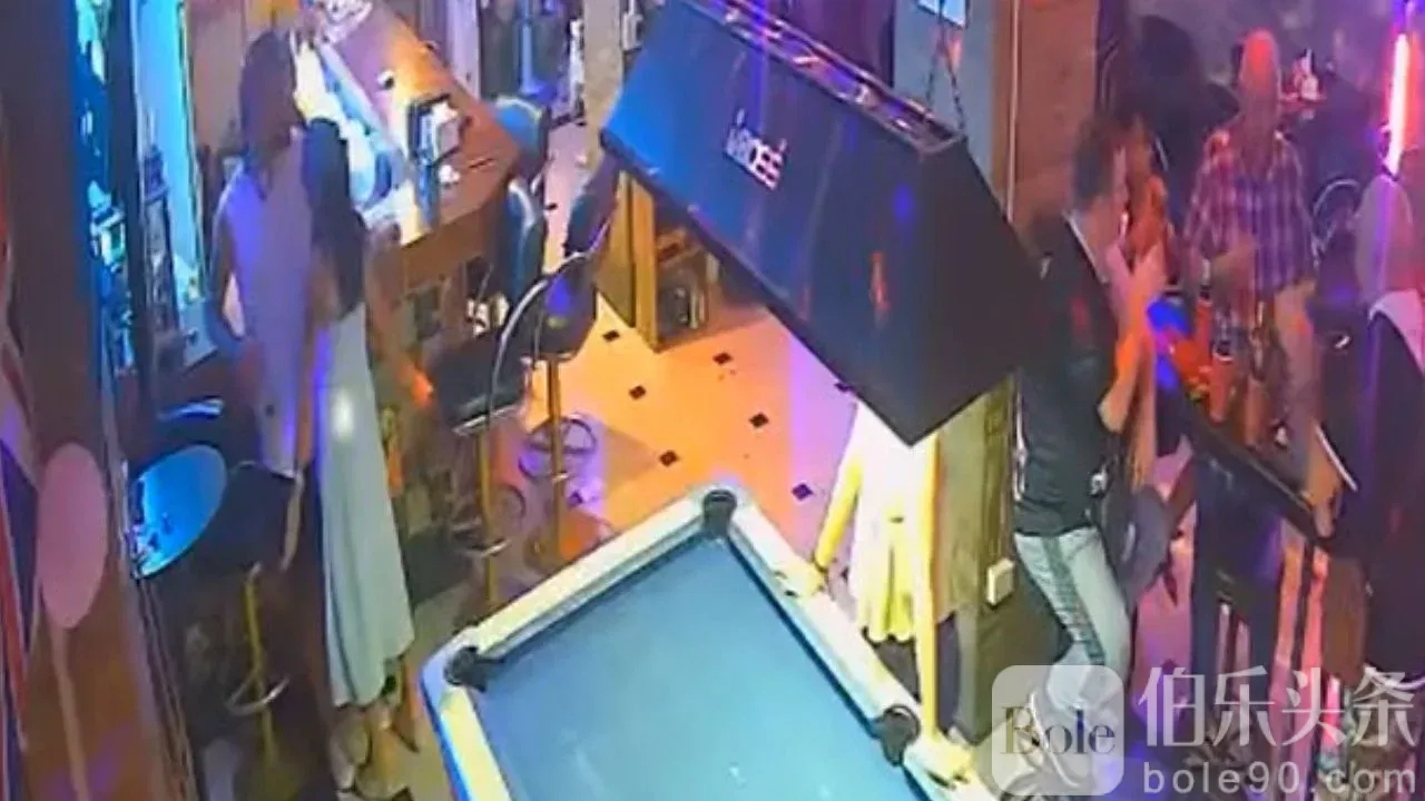 酒吧监控画面显示,当时Natty身穿白衣,与身穿白衬衫的外籍男友在吧台激烈争执。男方离开后,另一名外国男子上前劝解,但Natty情绪仍未平复,继续独自饮酒,最终当场自残。