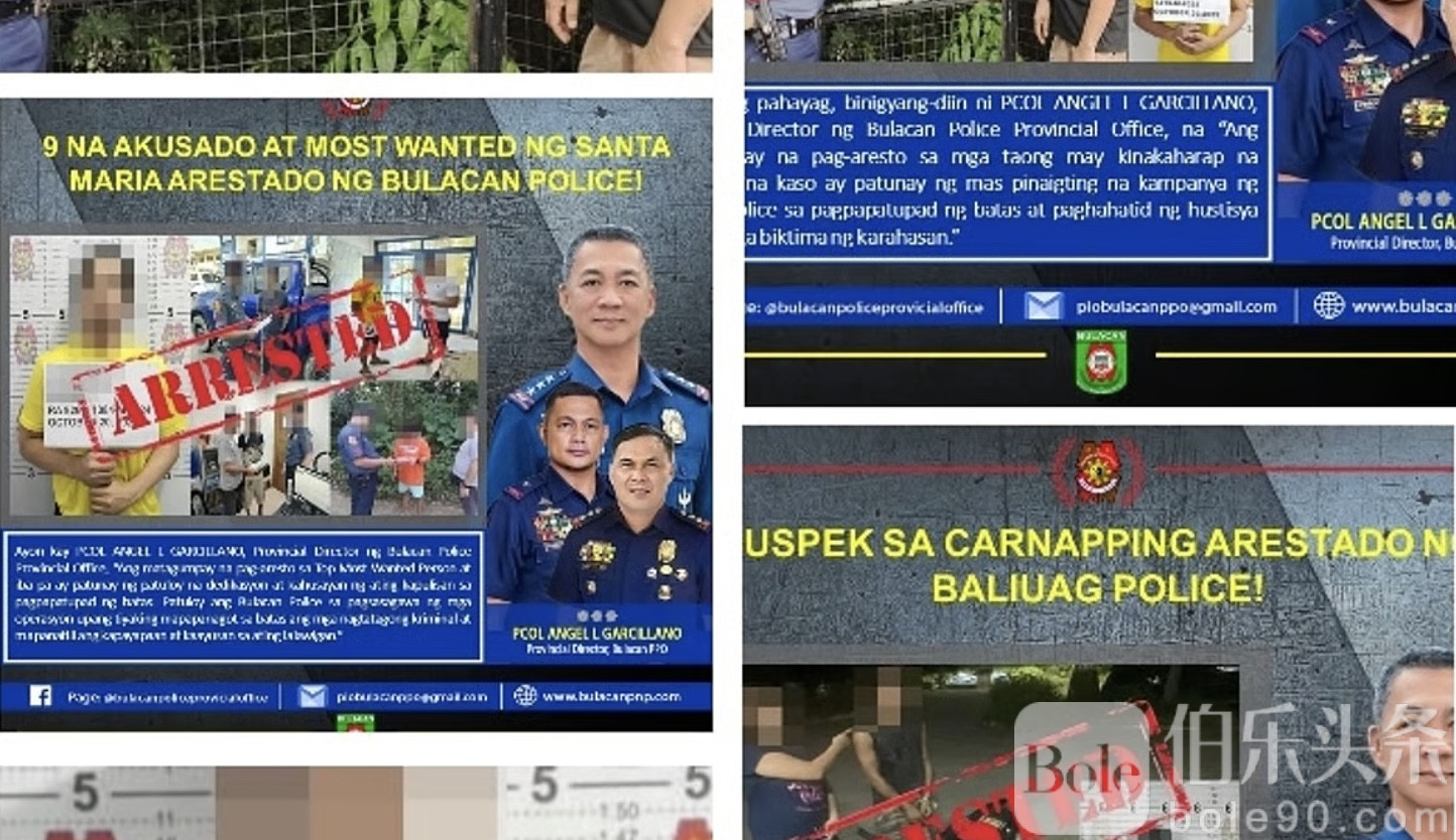 伯乐头条专讯:菲律宾布拉干省警方于10月19日至20日展开为期三天的大规模扫黑行动,共抓获11名涉嫌重大犯罪的嫌疑人,包括强奸、谋杀及车辆盗窃案件。这次行动标志着布拉干省在打击犯罪工作上取得的重要突破。