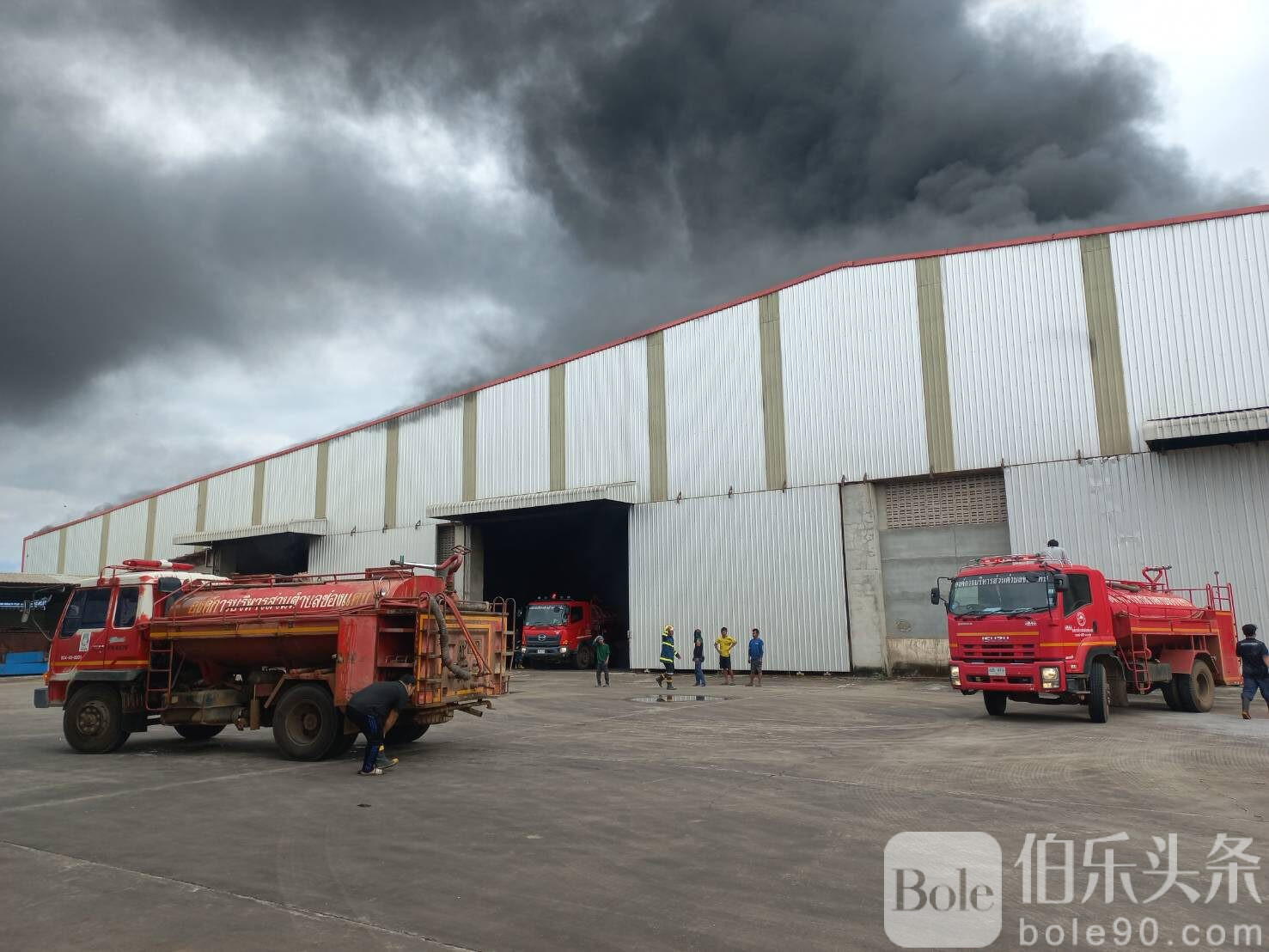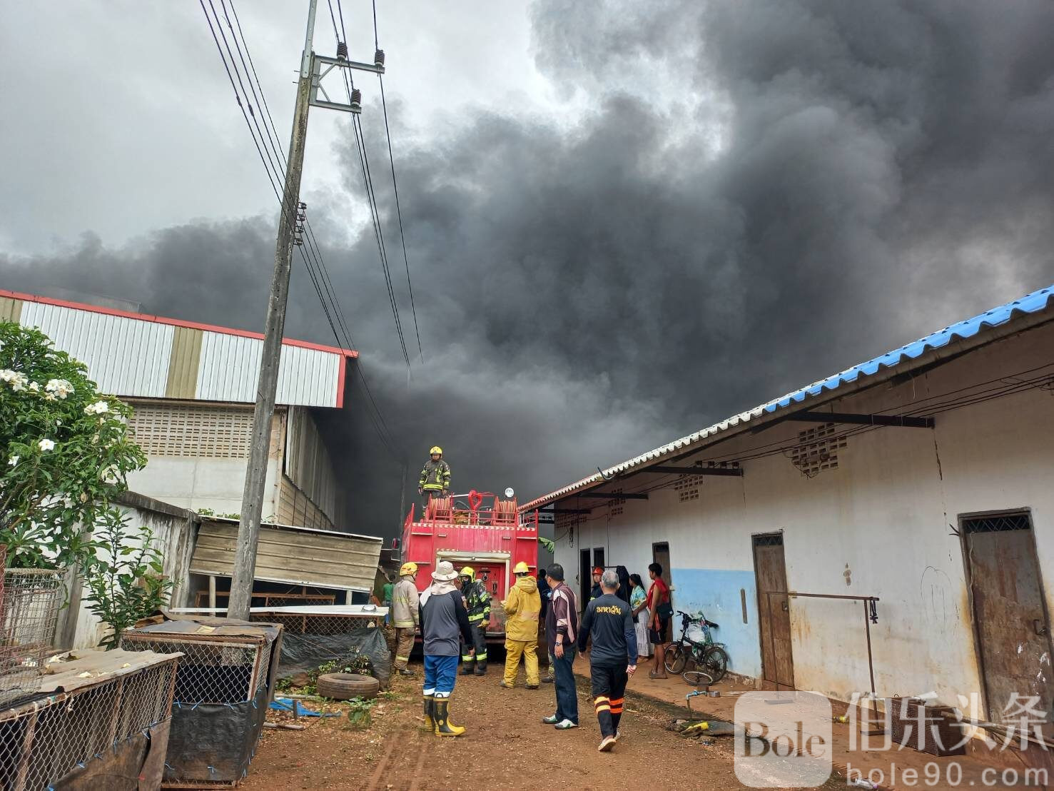 伯乐头条专讯:11月3日上午9时30分,泰国达府(Tak)湄索县(Mae Sot)发生一起严重火灾,一处储存玉米的烘干仓库与粮仓突发大火,滚滚黑烟冲天,覆盖整片社区,引发民众恐慌。消防部门紧急出动十余辆消防车,经过两个多小时的奋力扑救,火势才被控制。