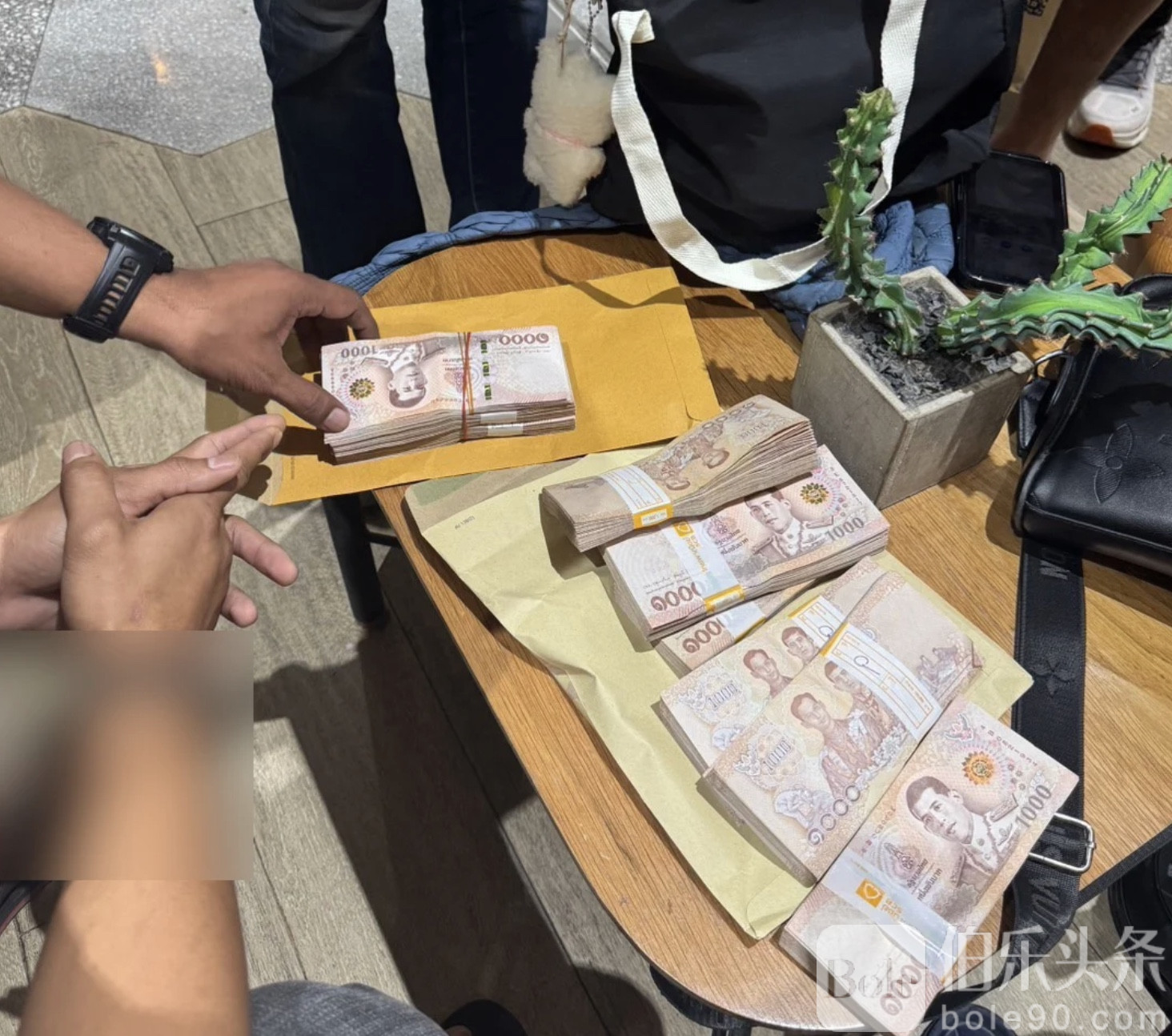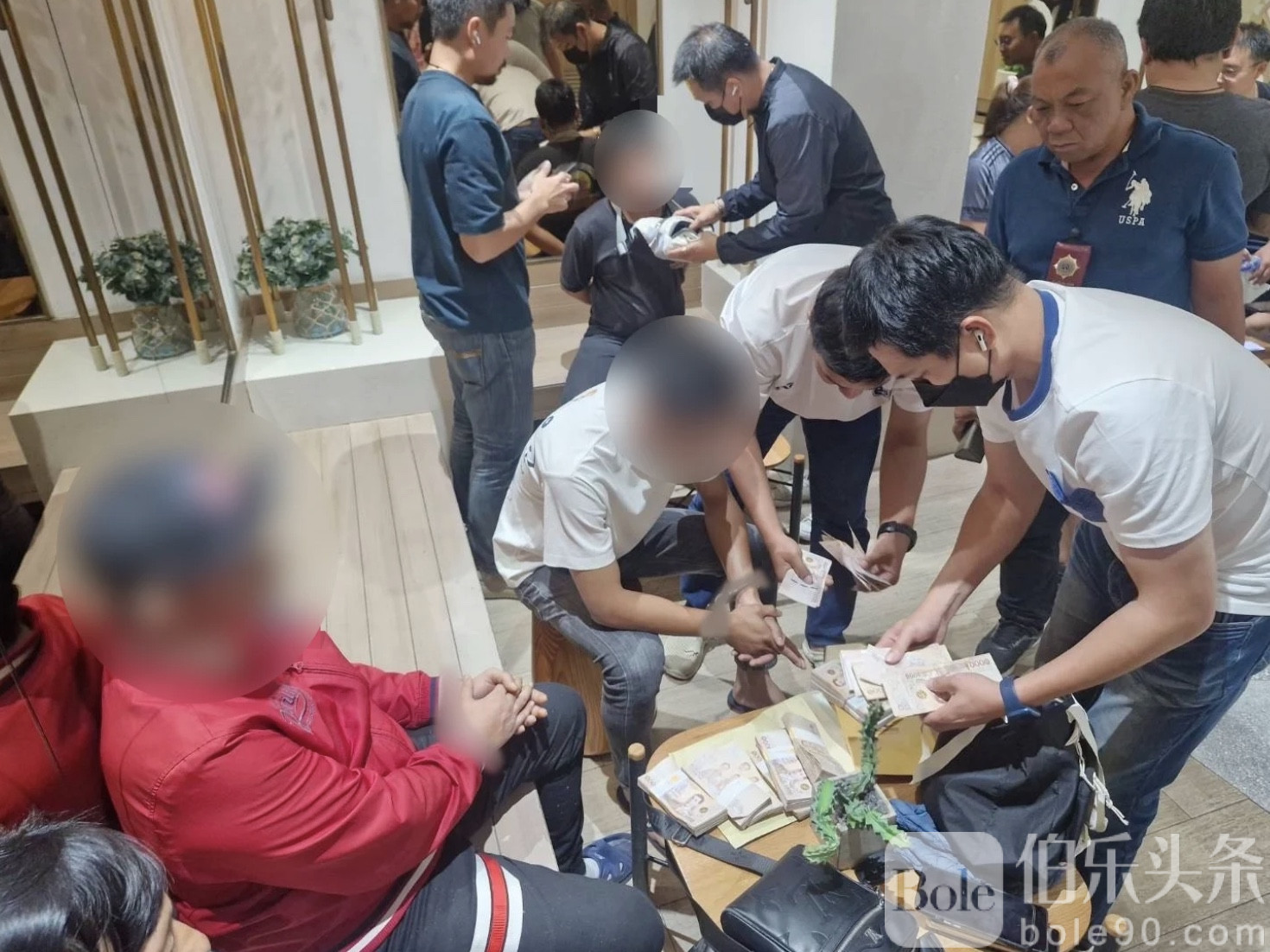 伯乐头条专讯:11月7日,泰国警察总署特警局(俗称“191警”)突袭春武里府一家大型商场,当场逮捕一个涉嫌为诈骗集团服务的“账户马仔团伙”,共计5人(4男1女),现场缴获现金超过120万泰铢,以及大量银行卡、银行存折与手机设备。