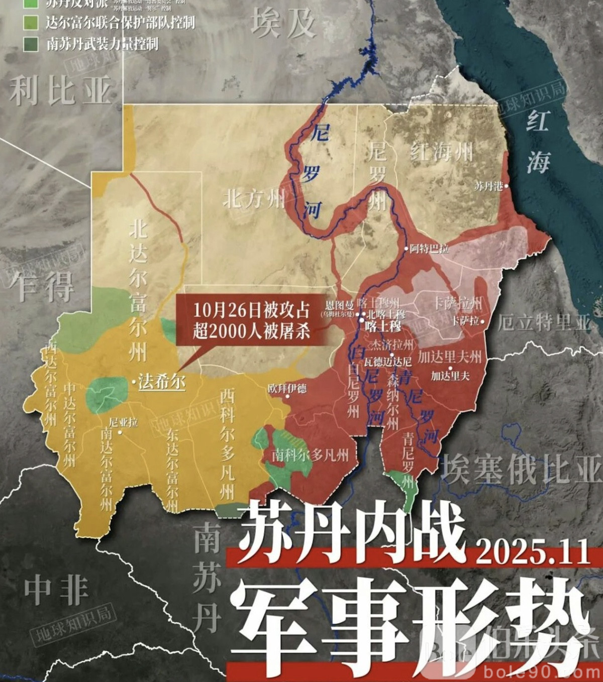 伯乐头条专讯:非洲国家苏丹的内战近期升级为大规模屠杀。自2025年10月26日起,西部重镇法希尔至少有2000名平民被处决,分析人士估计死亡人数可能已达数万。主要作案者是苏丹反政府武装“快速支援部队”(RSF),他们在围困法希尔长达500天后占领城市,随即展开大规模杀戮、劫掠及性暴力。联合国儿童基金会警告,约13万儿童面临绑架、性暴力、残害甚至死亡风险。