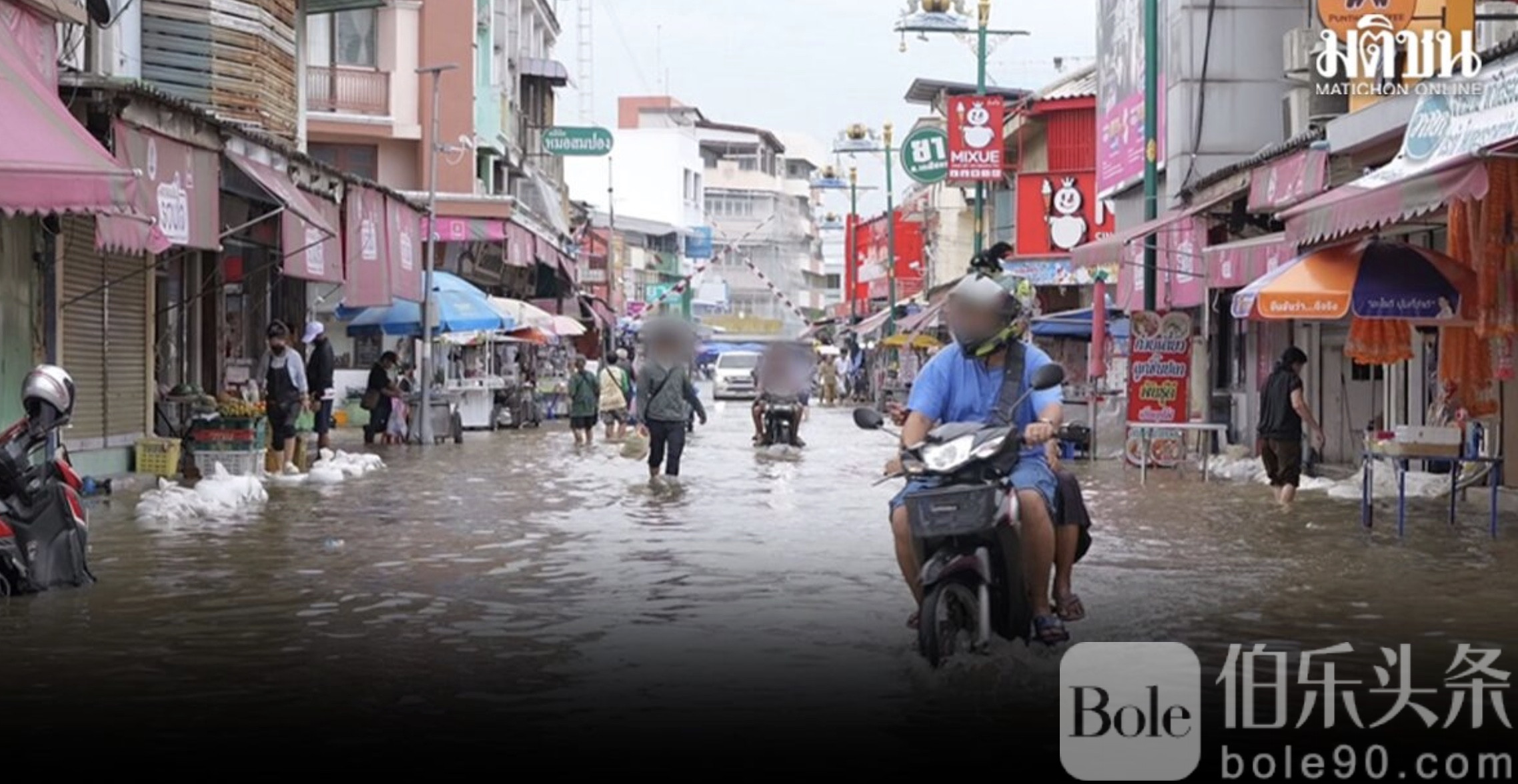 伯乐头条专讯:11月8日,泰国夜功府美功市场因持续降雨及河水水位上涨遭遇严重洪灾。洪水淹没沿河经济区,尤其是市场周边和主要道路,水位达到30至40厘米,部分民宅被淹,沿街人行道亦被覆盖,一些摩托车困在水中无法行驶,市场因此冷清萧条,游客无法正常购物。