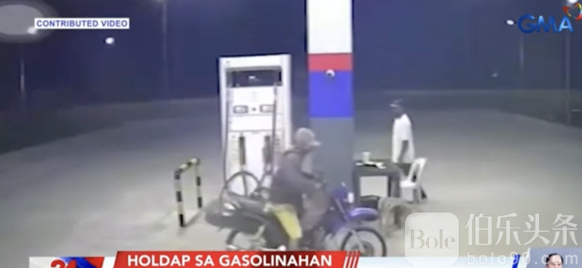 飞车持枪抢劫!菲律宾骑手加油站抢走近2千比索后逃逸