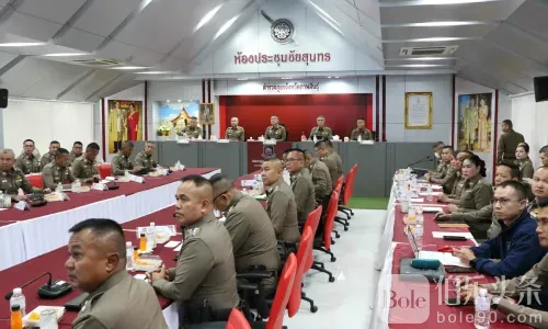 伯乐头条专讯:11月9日,泰国警察总督部指挥官“พล.ต.ท.สันติ ชัยนิรามัย”亲赴甘拉信府,对当地警察系统进行全面督导,并发布最新行动指令,要求全省各警局“全面扫描”,加速打击毒品、网络诈骗及各类犯罪活动。