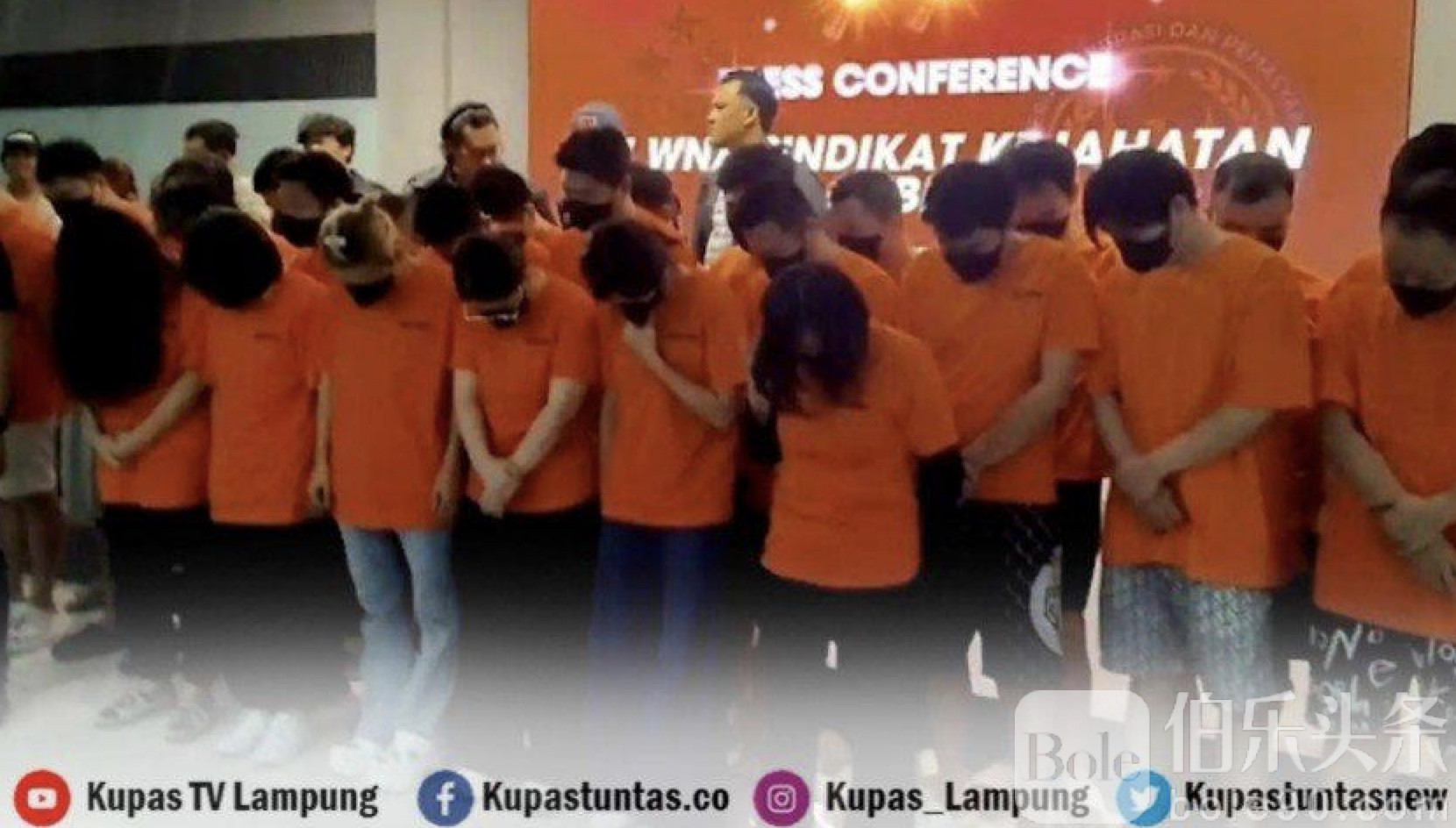 伯乐头条专讯: 印尼楠榜省警方近日突袭一处跨国网络诈骗窝点,逮捕27名中国籍嫌犯,这些人涉嫌冒充中国公安机关,对中国境内受害人实施电信诈骗。警方在10月31日行动中,当场拘捕21名男性和6名女性嫌犯,此次行动由西爪哇勿加泗警方与楠榜警方联合执行。
