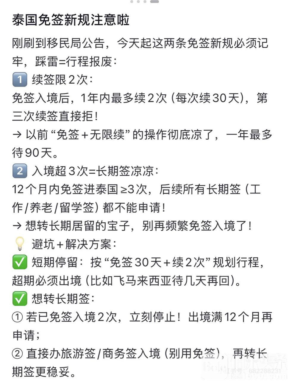这一新规适用于所有符合免签条件的外国游客,泰国移民局提醒计划长期或频繁访问泰国的游客务必提前了解规定,避免影响签证申请或被拒入境。