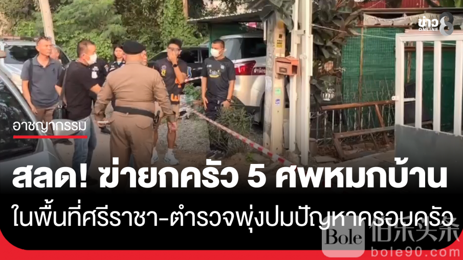 伯乐头条专讯:11月11日下午17时,春武里府斯里拉差区农查姆镇一户家庭被发现 5人死亡,包括1名男性、3名女性及1名女童。死者尸体已有明显腐败,散发出浓烈异味,初步推测死亡 2-3天 前发生。邻居表示,这户家庭平时生活低调,但近期异常安静,门窗紧闭,已有两天未见开门,因此报警求助。