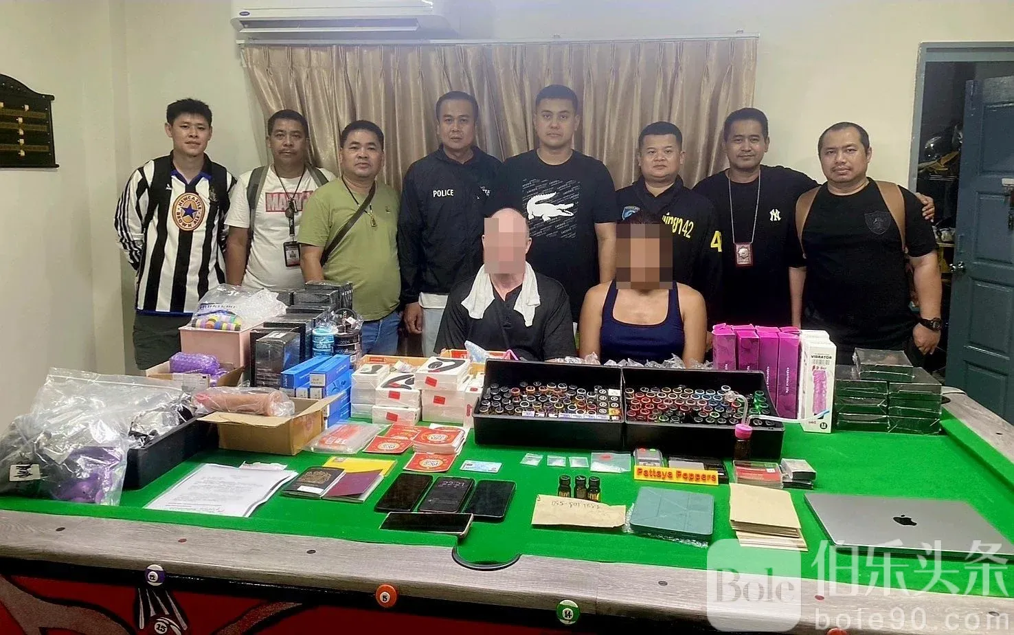 伯乐头条专讯:芭堤雅警方近日联合地方政府和移民局,成功捣毁一起涉黄涉毒网络犯罪案件。11月11日晚,警方在芭堤雅市区行动,逮捕两名网站运营者,一名泰国男子和一名英国男子,他们经营名为“PATTAYA POPPERS”的色情网站,并通过张贴街头宣传条的方式销售性爱玩具、催情药以及部分毒品。
