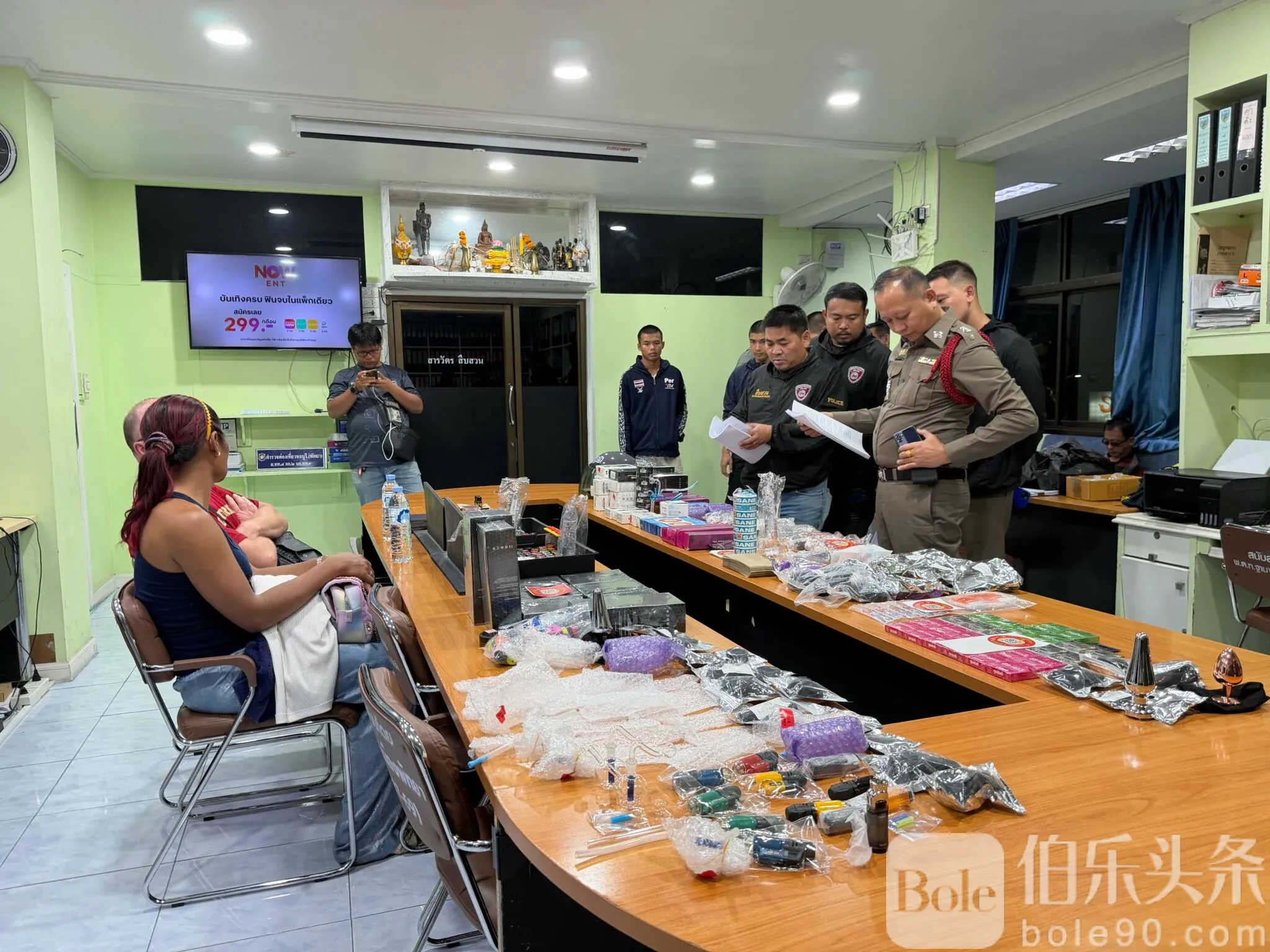行动中,警方发现大量违法物品,包括110件性爱玩具、180瓶催情液、36套性能力提升药、35件吸毒用具以及11.2克毒品。调查显示,两名嫌疑人独立运营网站已有一年,并在过去6个月通过贴条宣传吸引顾客,主要面向芭堤雅的外国游客。嫌疑人供称,因经济低迷导致销售下滑,才采取贴条推广的方式,但最终仍未能逃过警方侦查。