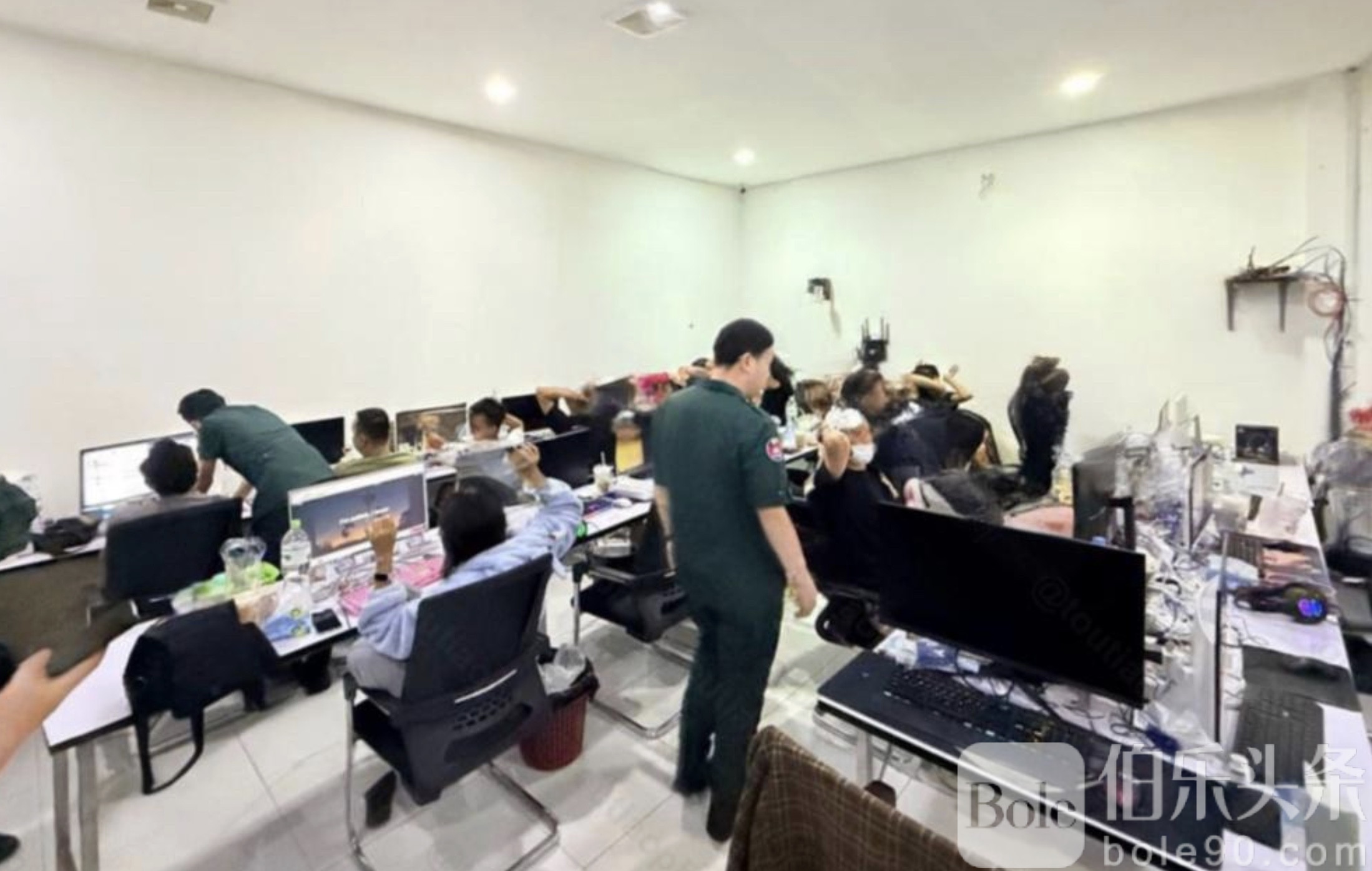 伯乐头条专讯:11月12日,柬埔寨国家警察总署联合多部门在波贝市展开大规模扫荡行动,成功突袭位于马里南赌场内的网络诈骗基地,逮捕 35名外籍嫌犯及2名柬籍人员