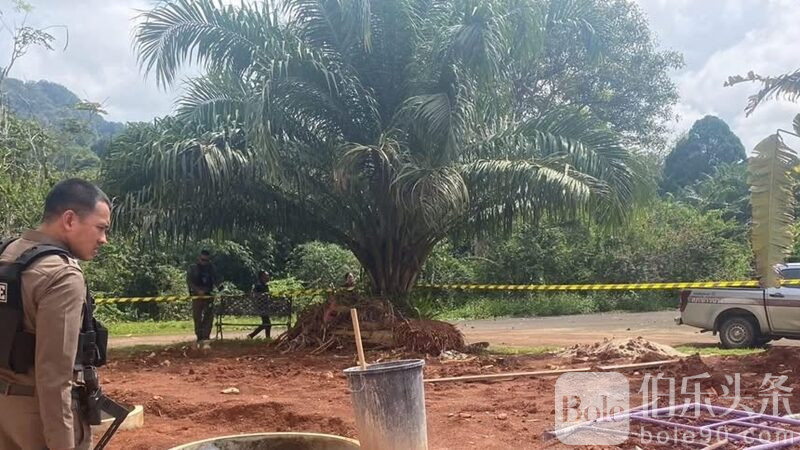 伯乐头条专讯:泰国甲米府植物园办公室惊现枪击惨案,一名承包商因工程压力失控,持手枪对办公室开火,造成2人当场死亡,另有1人受伤送医抢救。警方接报迅速行动,在现场及逃逸途中将64岁的嫌犯拘捕,并缴获一把.38口径手枪及7发未发射子弹。