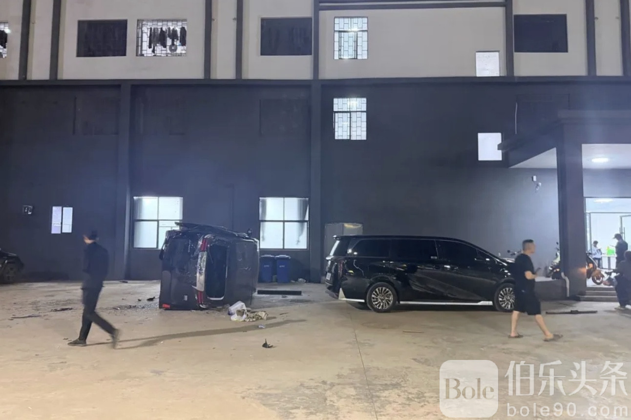 从现场视频可以看到,大批员工在广场聚集,有人挥拳高喊,也有人推搡冲撞,气氛紧绷。部分车辆遭围攻,不少玻璃被砸碎,一台疑似“盘总”的豪车直接被掀翻,场面相当激烈。