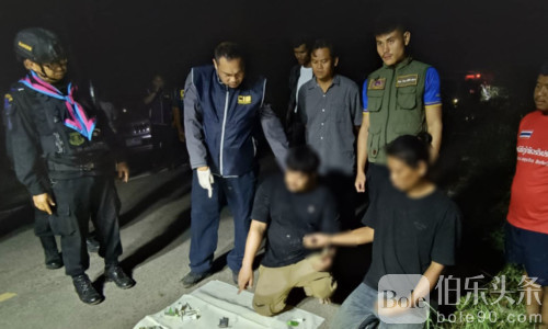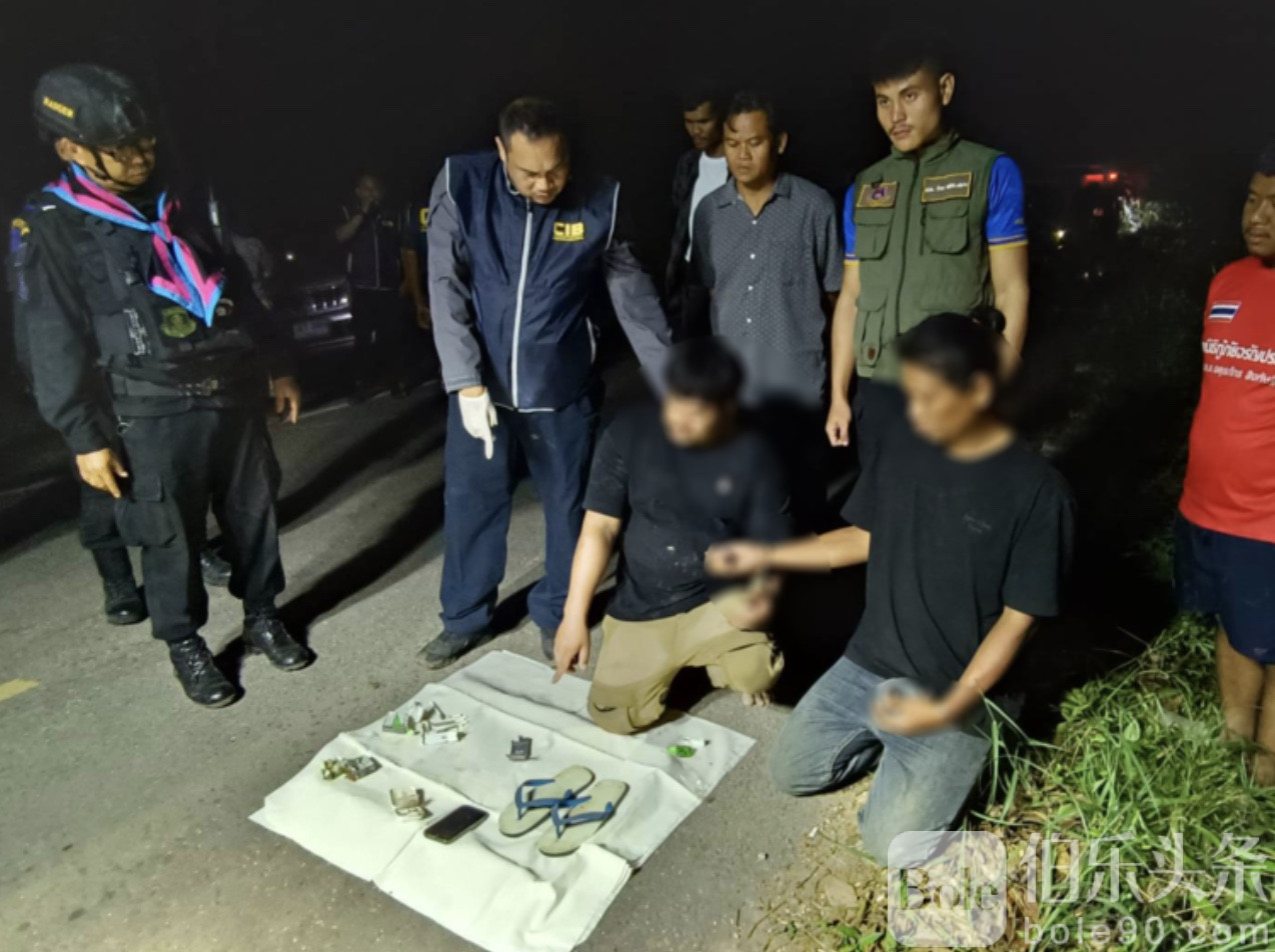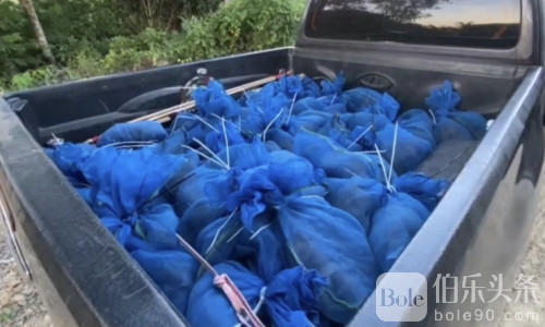 伯乐头条专讯:泰国沙缴府边境发生惊险追捕行动,警方在自然通道发现一辆可疑灰黑色Toyota Revo皮卡车,车内有两名男子正在搬运蓝色网袋装载的货物。两人见警方靠近立即开车逃离,随后弃车入林并跳入水塘企图逃跑,但最终被执法人员当场抓获。