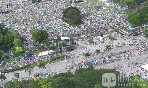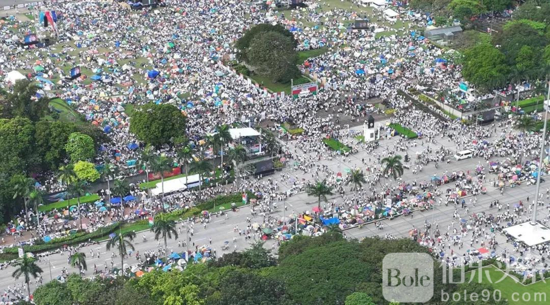 伯乐头条专讯:11月16日,菲律宾马尼拉反腐行动进入高潮。上午9时30分,黎刹公园基里诺大看台周边已经涌入约2万名参与者,人潮从清晨便开始不断聚集,车辆与人流占满周边街道。警方凌晨起封锁Roxas大道部分路段,加强现场秩序与安全管控。