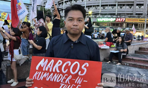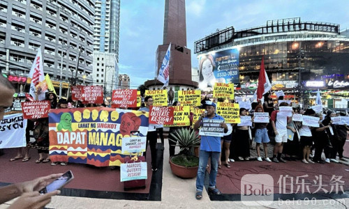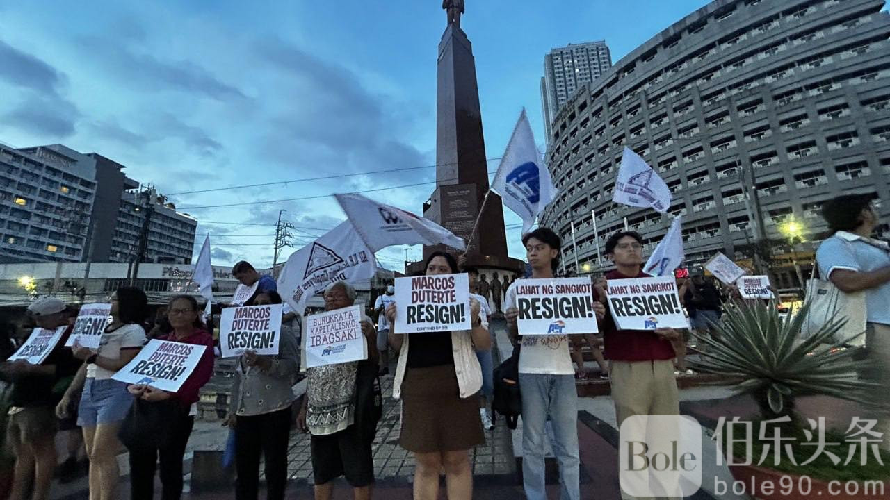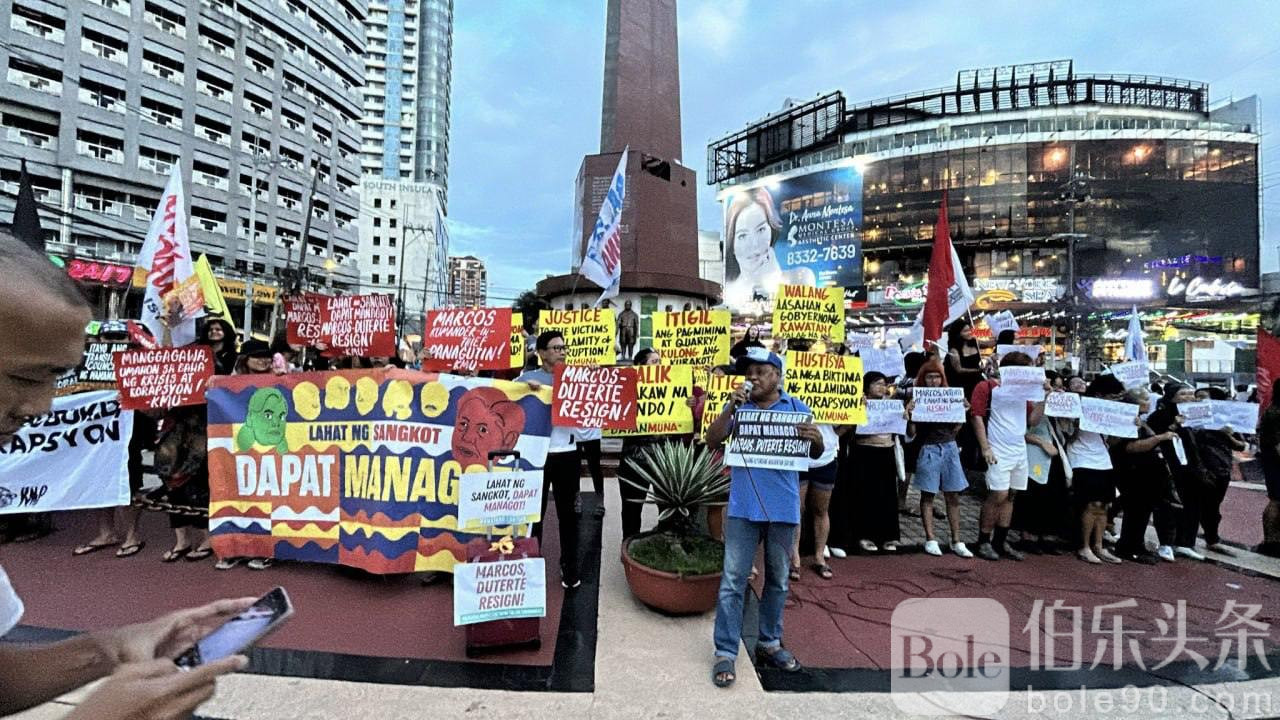 伯乐头条专讯:菲律宾奎松市近日爆发大规模示威活动,多个人权及进步团体聚集在Boy Scout Circle(博伊斯考特环岛),高举标语与布条,公开呼吁总统小马科斯(Bongbong Marcos Jr.)与副总统萨拉·杜特尔特(Sara Duterte)下台问责。