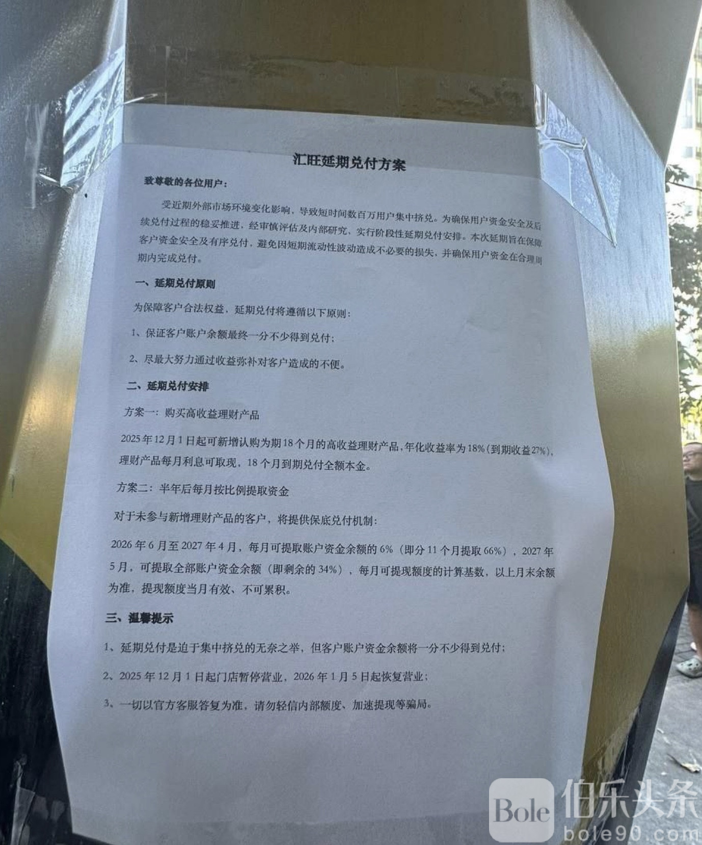 根据公告,汇旺提出两种延期兑付方案:
