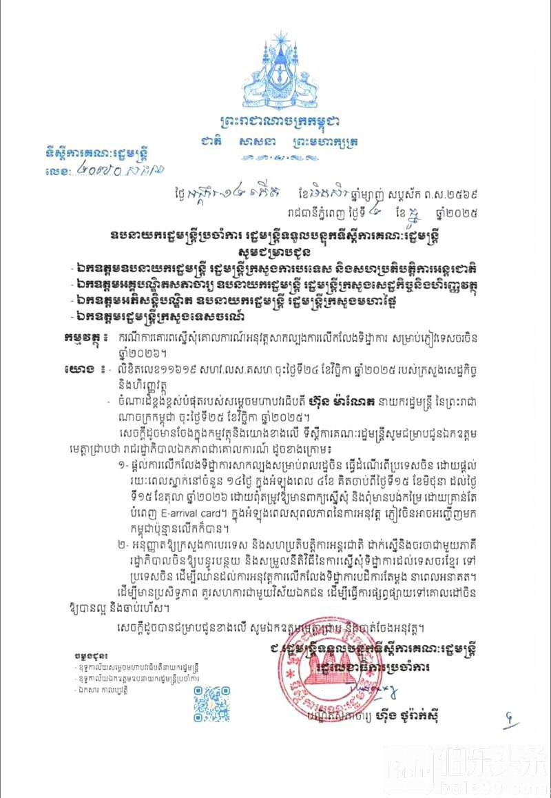 伯乐头条专讯:柬埔寨王国政府正式宣布,将对中国公民实施免签入境措施,中国旅客从中国赴柬埔寨可免签停留14天,此政策将于2026年6月15日起生效,并持续至10月15日。