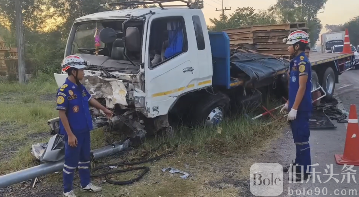 事故发生于当天早上6时左右,地点位于武里南府“南戎—沙姆尼”公路路段。警方与救援队赶抵时,先在路边发现受损的拖车,司机为53岁男子,幸未受伤。