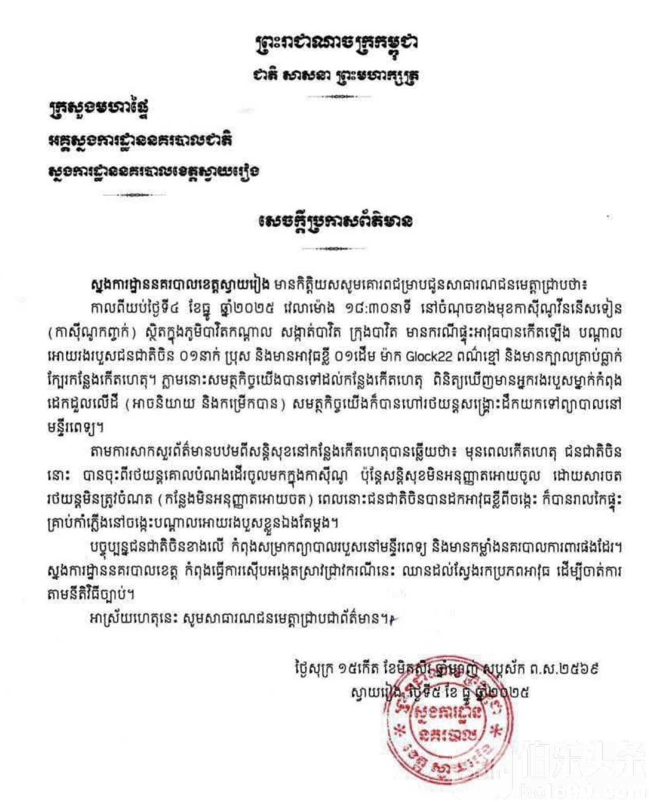 男子目前已被送往医院接受救治,并由警方严密看护。省警察部门已展开深入调查,重点核查枪支来源、持枪合法性以及男子的行为动机。警方透露,该枪击极可能是误操作走火,但不排除情绪激动导致的“自伤行为”,具体原因有待进一步审查。当地警方强调,木牌地区近期对非法枪械与跨境涉案行为的整治力度正在加强,本案已列入重点案件处理。