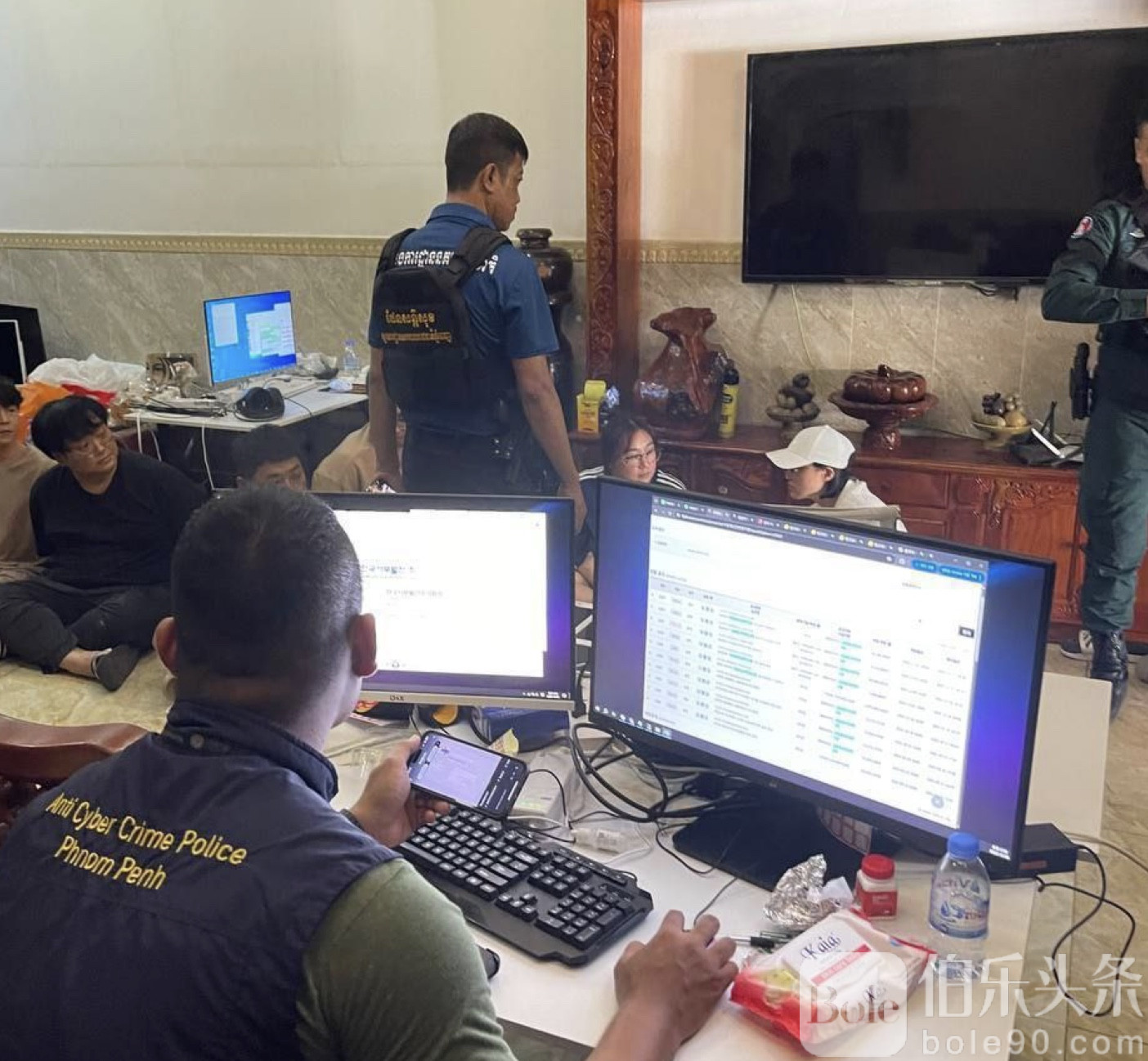 伯乐头条专讯:柬埔寨警方又有大动作。位于金边市鲁西科区的一处民宅,被执法部门精准锁定为“科技诈骗窝点”。12月6日,一场联合突击行动悄然展开,最终9名涉嫌网络诈骗的嫌疑人被当场带走,其中7人为韩国籍,包括2名女性;另外2名柬埔寨籍嫌犯则担任司机角色。