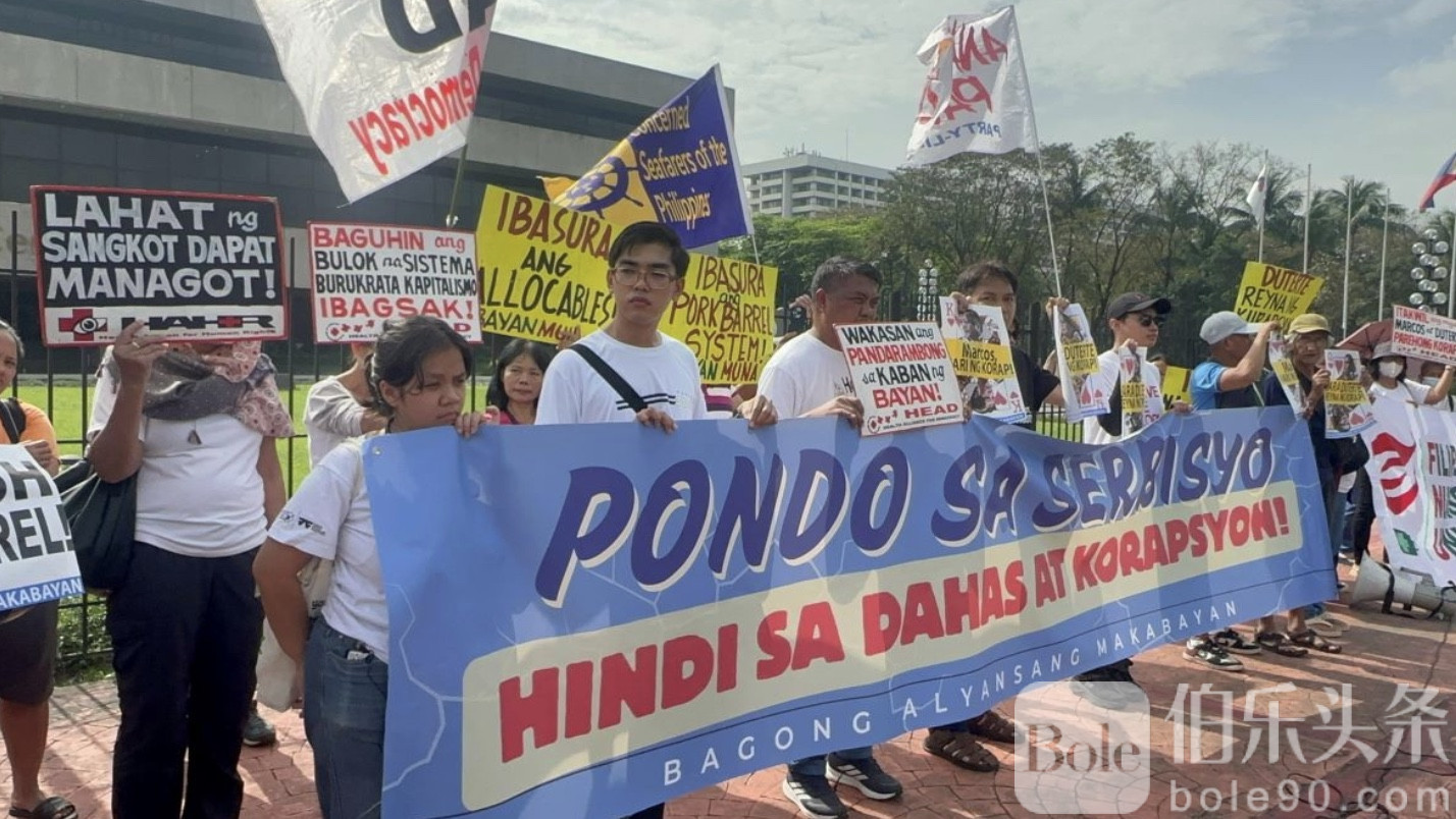 伯乐头条专讯:在2026年国家预算两院协商委员会(Bicam)会议即将登场之际,菲律宾左翼联盟“爱国新联盟”(BAYAN)12月13日中午抢先走上街头,在帕赛市菲律宾国际会议中心(PICC)外发起抗议行动,矛头直指被指“漏洞百出”的防洪工程项目与潜藏其中的贪腐风险。