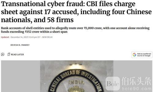 伯乐头条专讯: 印度中央调查局(CBI)12月14日正式对一桩震惊国际的跨国网络诈骗案提起诉讼,涉及17名被告及58家公司,其中包括4名中国公民。调查显示,该诈骗集团自2020年起运作,手法五花八门,从假贷款App、虚假投资、庞氏骗局,到兼职招聘与网络游戏欺诈,几乎无所不用其极。