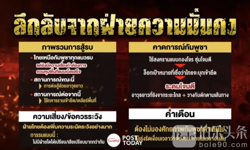 伯乐头条专讯:泰国与柬埔寨边境近日持续传出交火与紧张对峙声浪,来自安全与政治层面的综合评估认为,此轮冲突已明显超出短期摩擦范畴,正逐步演变为一场可能延续至新年后的长期拉锯战,短期内难以降温。