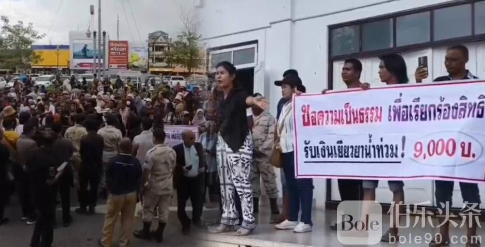 伯乐头条专讯:泰国斯塔腊爆发激烈抗议!当地时间12月17日,斯塔腊省两地——塔帕区与库安卡隆区的约300名村民聚集在省县政府大楼前,强烈要求追回洪灾补助金,每户9,000铢。此次集会起因是大量村民发现自己名列“漏发名单”,虽然拥有明确受灾证据,却迟迟未收到政府拨款。