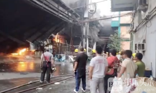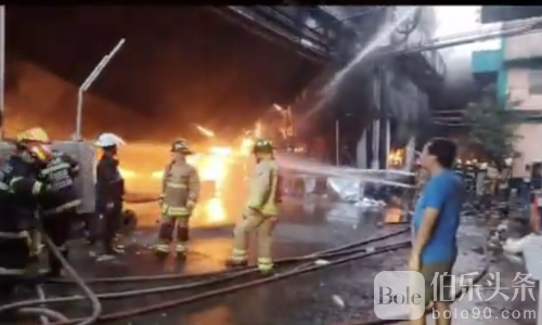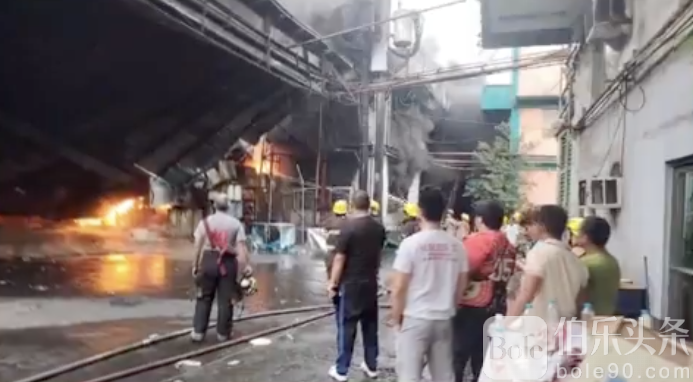 菲律宾仓库突发大火!火势连升三级 屋顶都烧穿