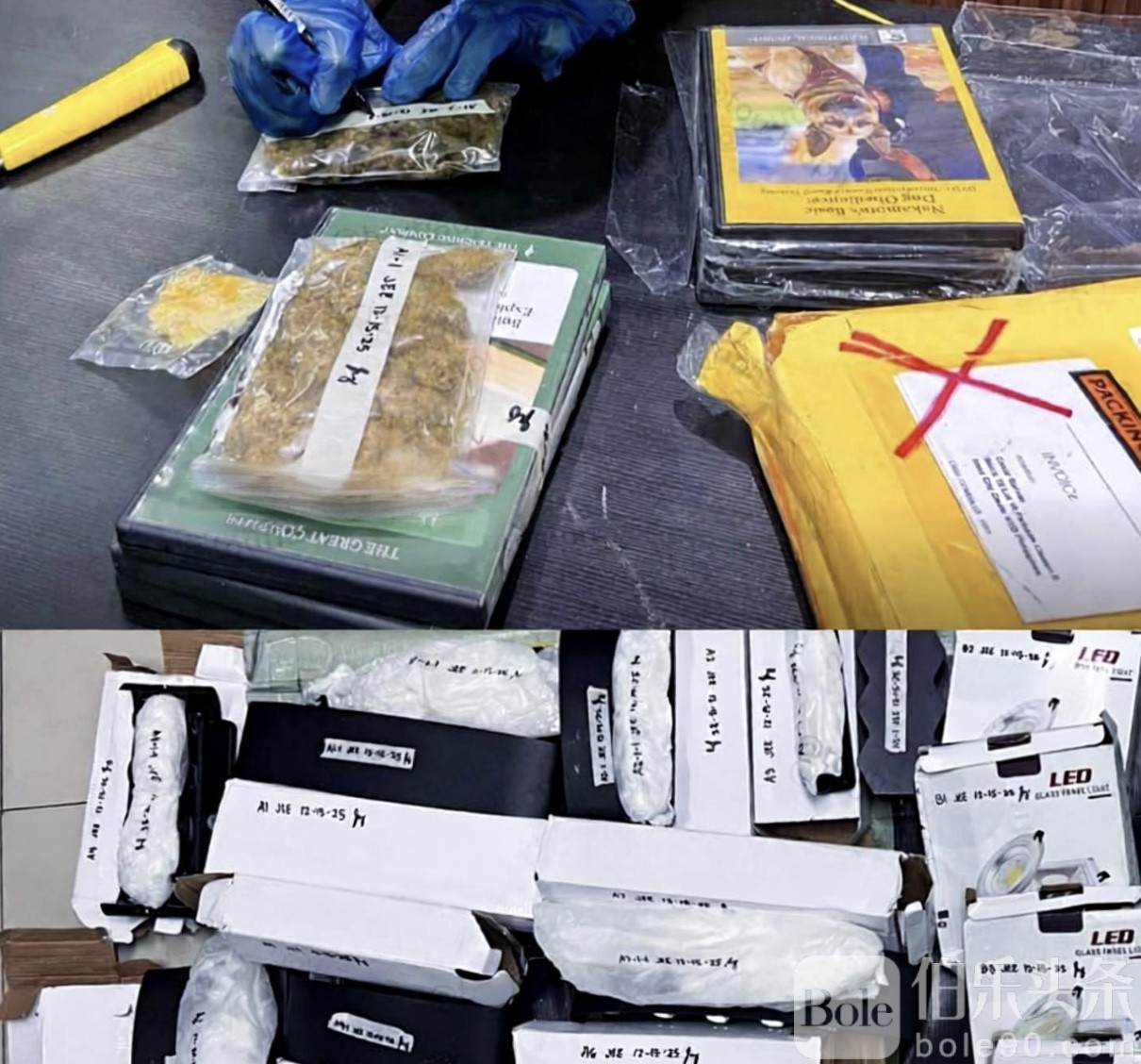 此次行动由海关—NAIA牵头,并与菲律宾缉毒署(PDEA)以及NAIA跨机构毒品拦截工作组联合展开,属于政府加强边境管控、严打毒品走私行动的重要组成部分。令人震惊的是,这些包裹申报时被标注为户外壁灯、包袋、数码光盘、普通商品及书籍等日用品,但因流露出可疑迹象,被列为重点检查对象。