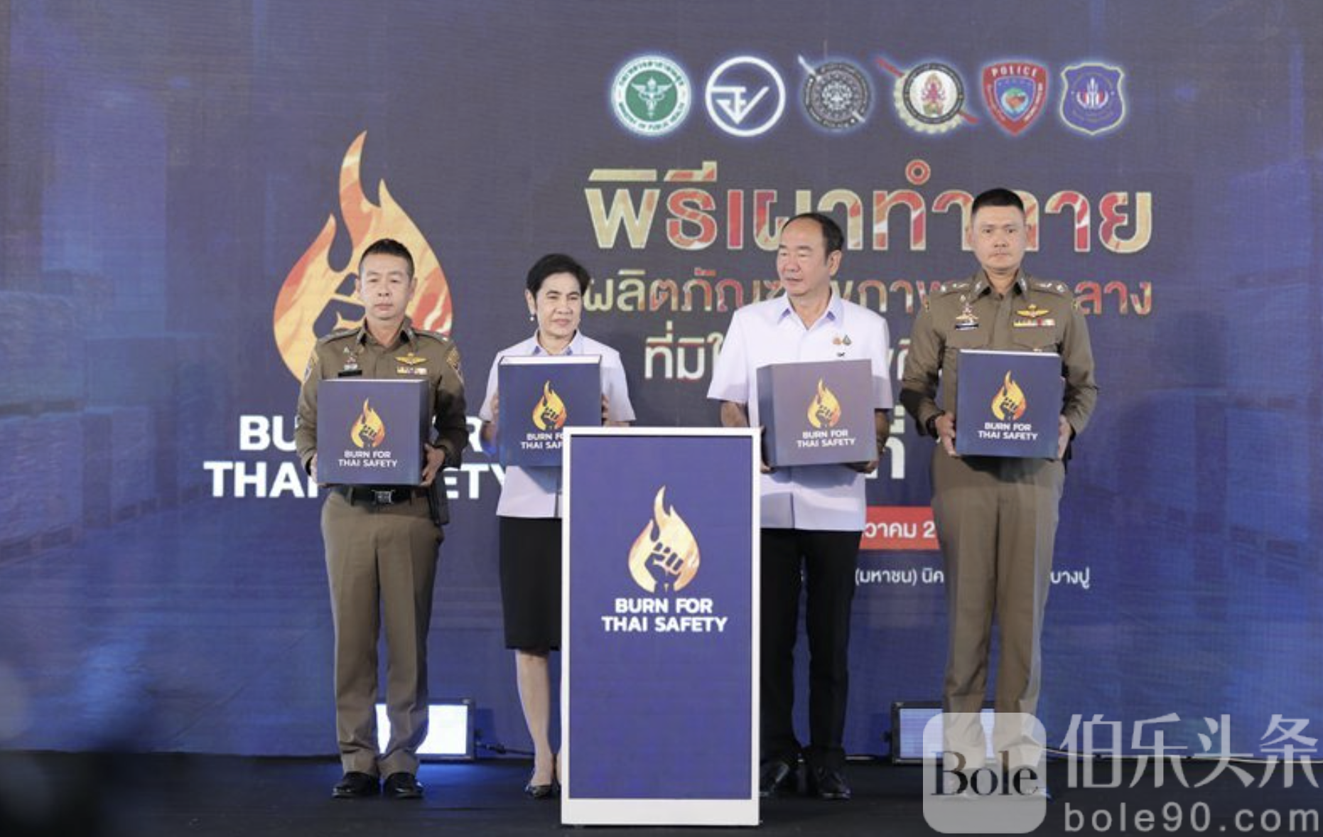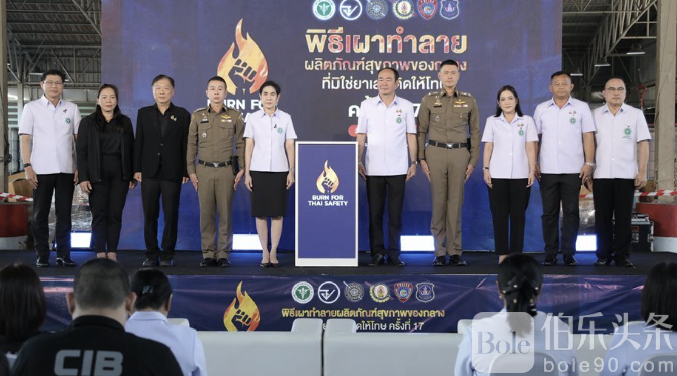 伯乐头条专讯:泰国近日展开一场大规模执法行动,卫生部门与警方联合行动,焚毁了近40吨非法健康产品,总价值高达2.5亿泰铢,显示出泰国当局打击违法保健品的决心。