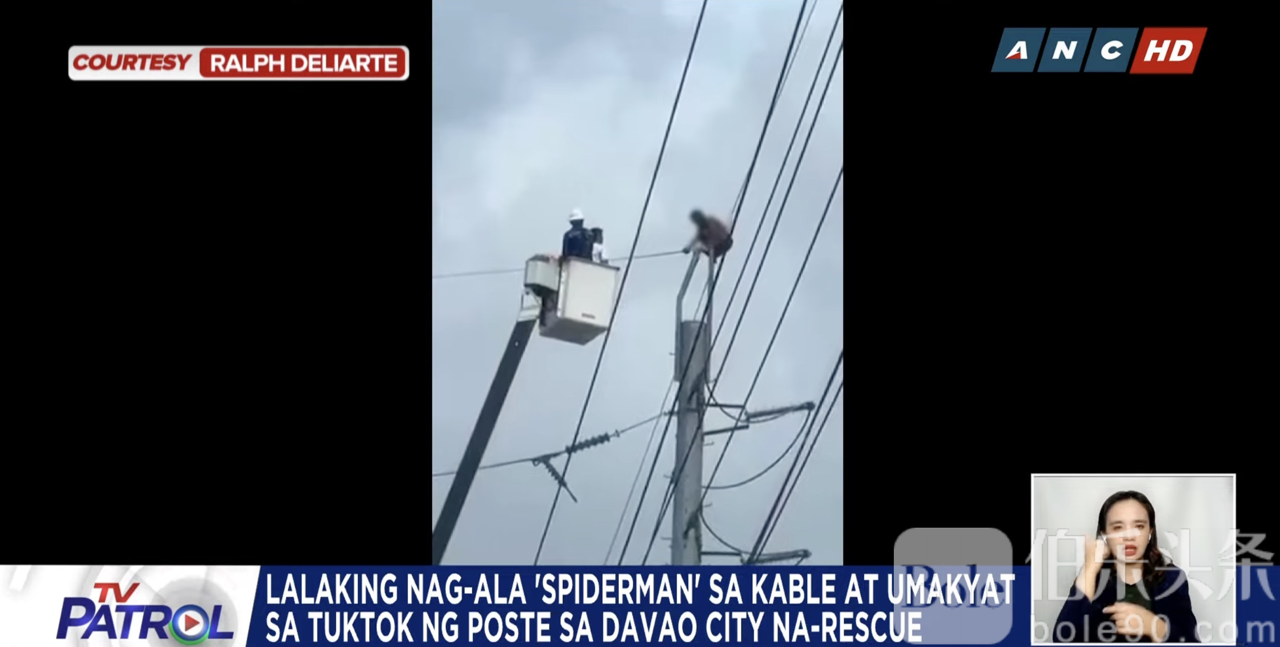 菲律宾“蜘蛛侠”现身达沃!男子徒手爬高压电缆致停电3小时