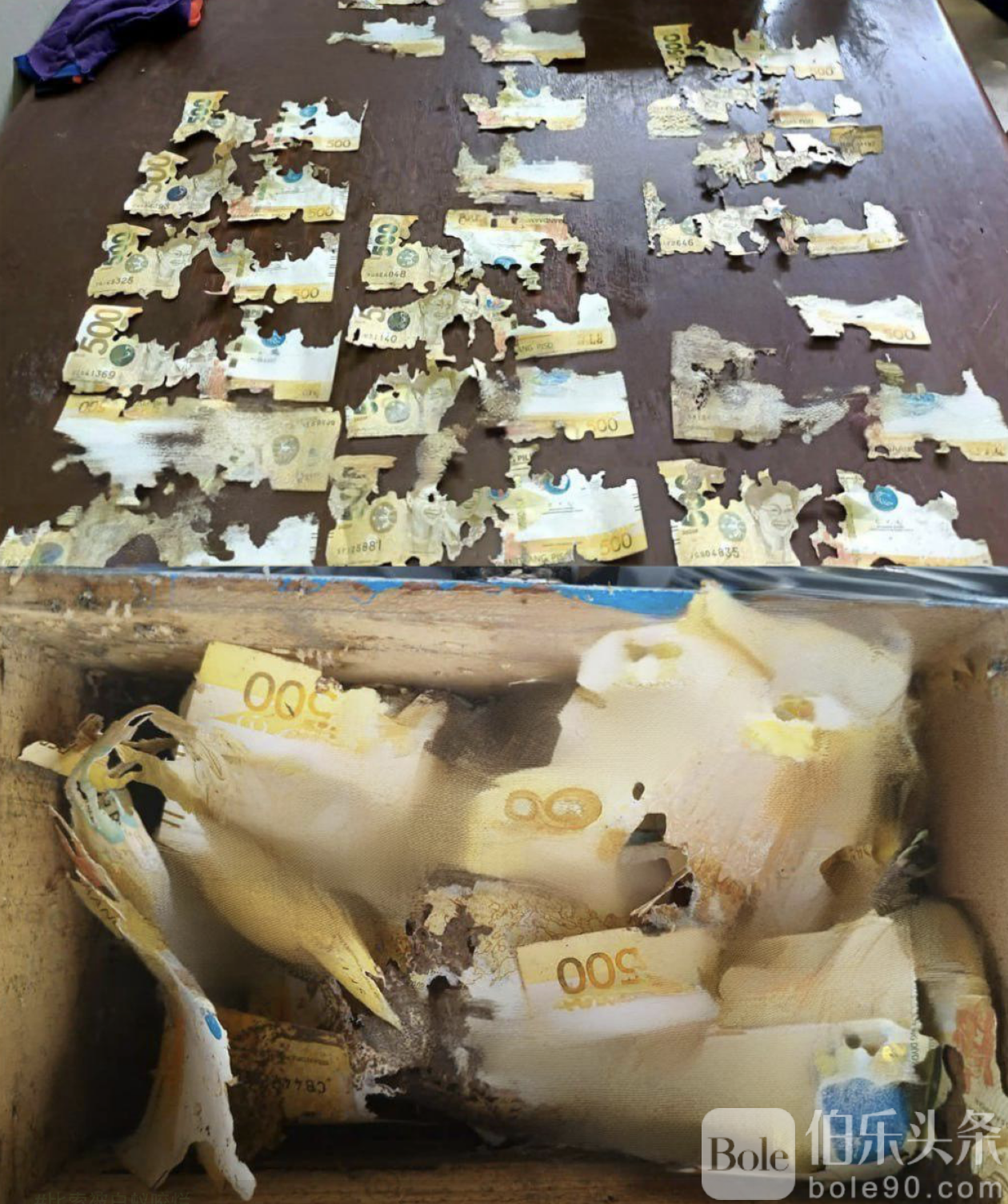 伯乐头条专讯:菲律宾帕赛市一名高尔夫球场员工近日遭遇离奇损失其辛苦存下的一整年小费共计2.5万比索,竟被白蚁啃食殆尽。据知情人士称,这名工人将现金存放在木制小费箱中,共计49张500比索钞票。然而,当他打开小费箱时发现,箱中仅剩1张完整钞票,其余几乎全部被白蚁啃成碎片。