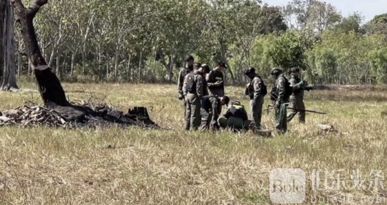 伯乐头条专讯:12月30日,泰国东北部四沙府甘特拉克区,村民在橡胶园中发现一枚未爆的加农炮炮弹,随即报告村长并通知第22边防警察营。警方迅速到场将炮弹转移至开阔地带并成功引爆销毁,以防园区损毁及居民受伤。