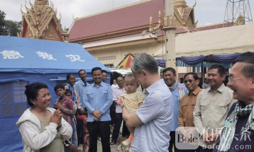 伯乐头条专讯:中国驻柬埔寨大使汪文斌近日与柬埔寨国家灾害管理委员会第一副主席金坤一道,前往卜迭棉芷省与马德望省,向当地因边境局势和安全风险而流离失所的平民发放中国政府提供的首批紧急人道主义援助物资。