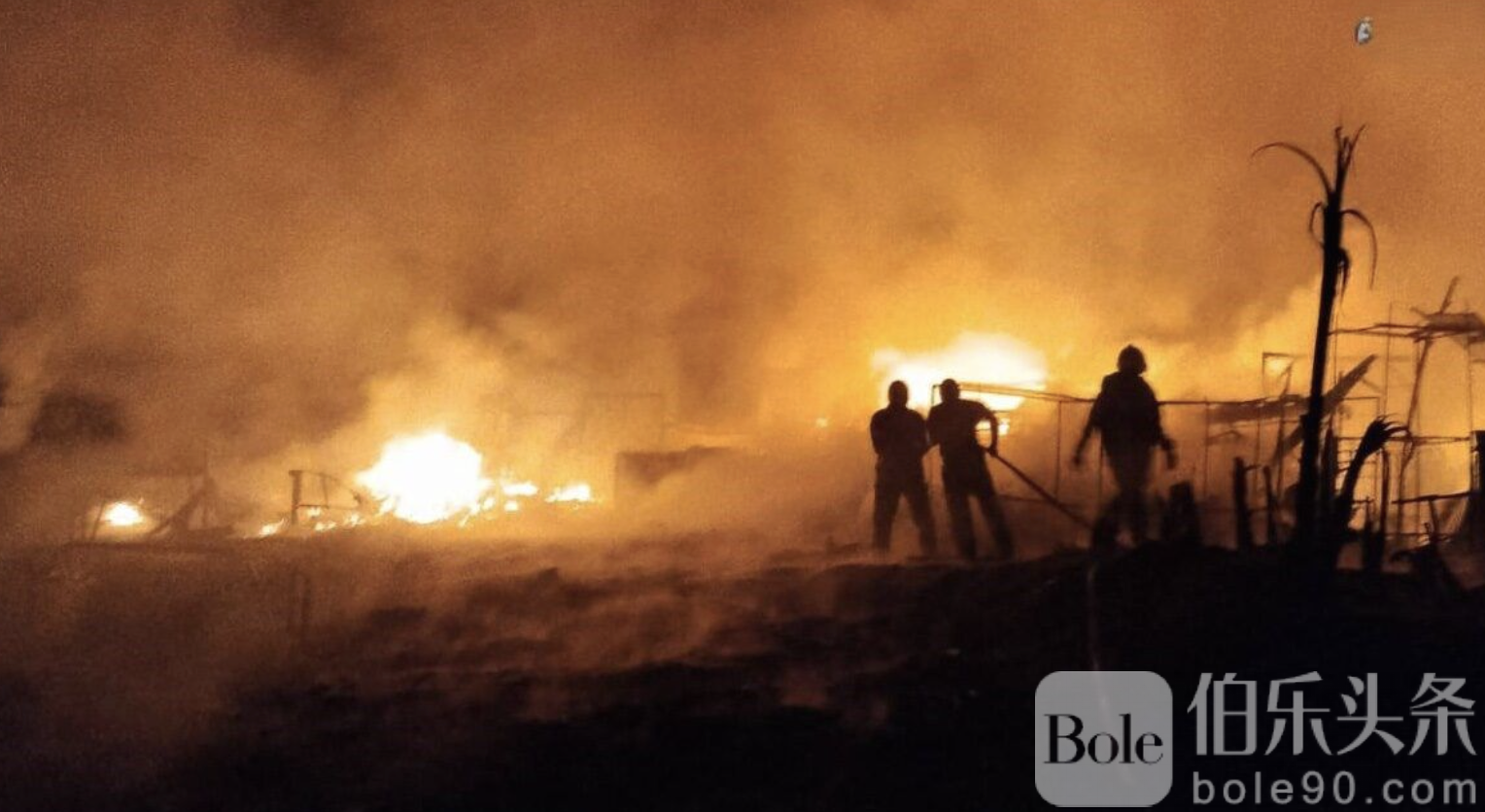 伯乐头条专讯: 泰国春武里省西拉差消息,当地时间1月5日清晨约4:30,一场大火彻底烧毁了位于博文区Moo 2的二手货店及其附属仓库,同时损坏多辆汽车和摩托车。所幸无人伤亡,但财产损失惨重,现场浓烟滚滚,爆炸声不断,居民受惊。