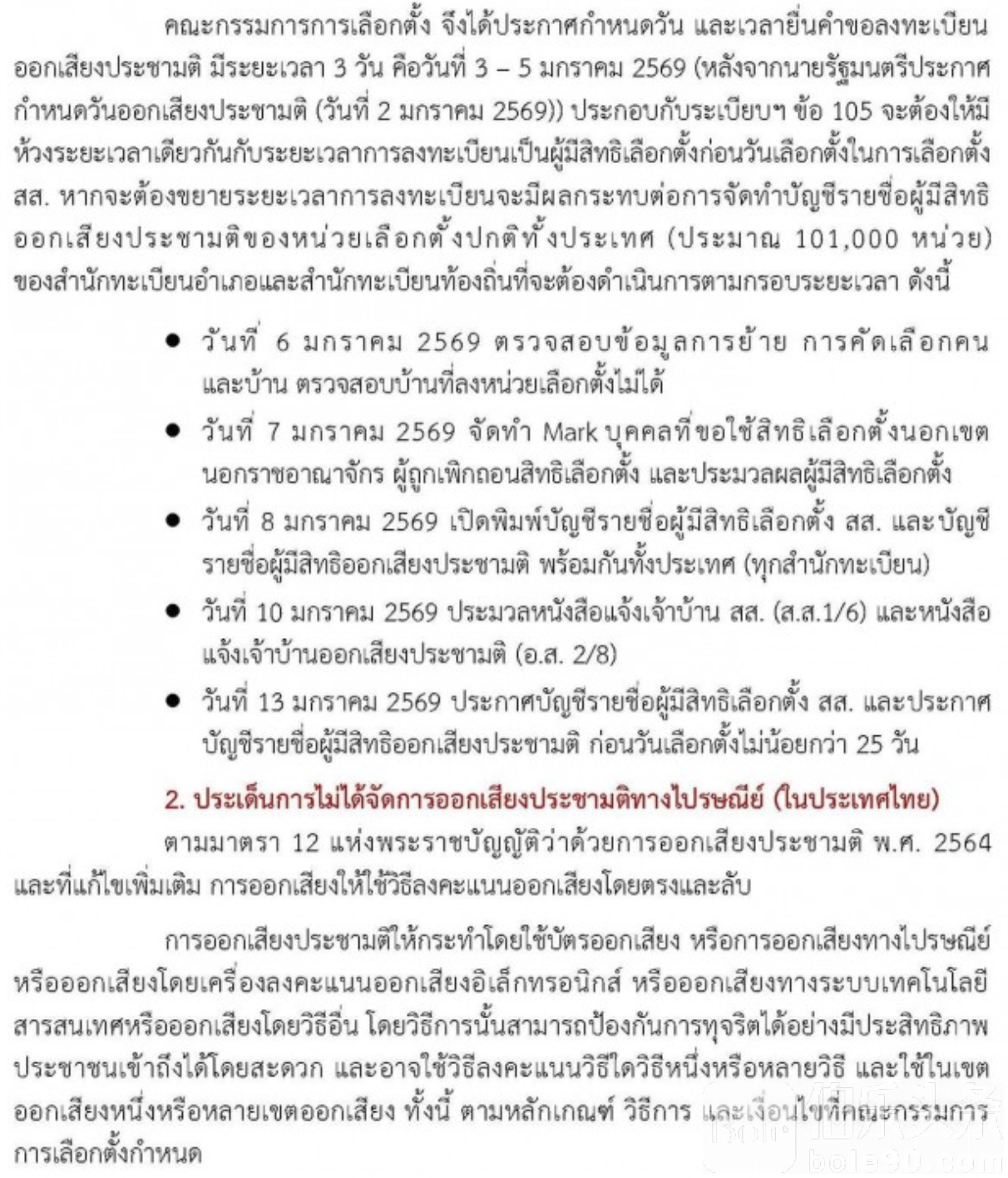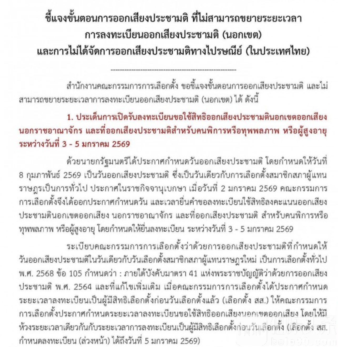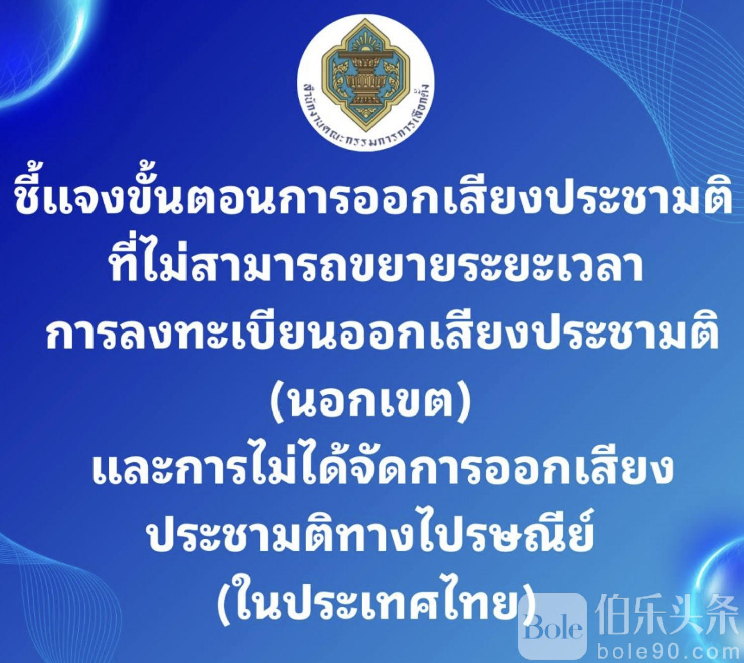 伯乐头条专讯:泰国选举委员会近日就社会关注的“公投境外登记不延期”以及“未开放邮寄投票”问题作出正式说明,强调相关安排完全依照法律程序执行,公投登记系统将于1月5日正式关闭,不再延长。