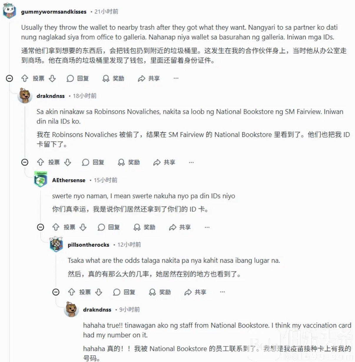 随着帖文附上的嫌疑人画面曝光,事件迅速在网络发酵。评论区里,愤怒与同情交织——不少网友直言“太气人了”,还有人感叹,连被视为治安较好的BGC都难逃小偷盯上。有人支招,让失主同步把信息发到Facebook、TikTok和Threads,扩大传播面;也有人分享经验,提醒去附近垃圾桶找找,“很多小偷只拿现金,钱包很快就会被丢掉”。