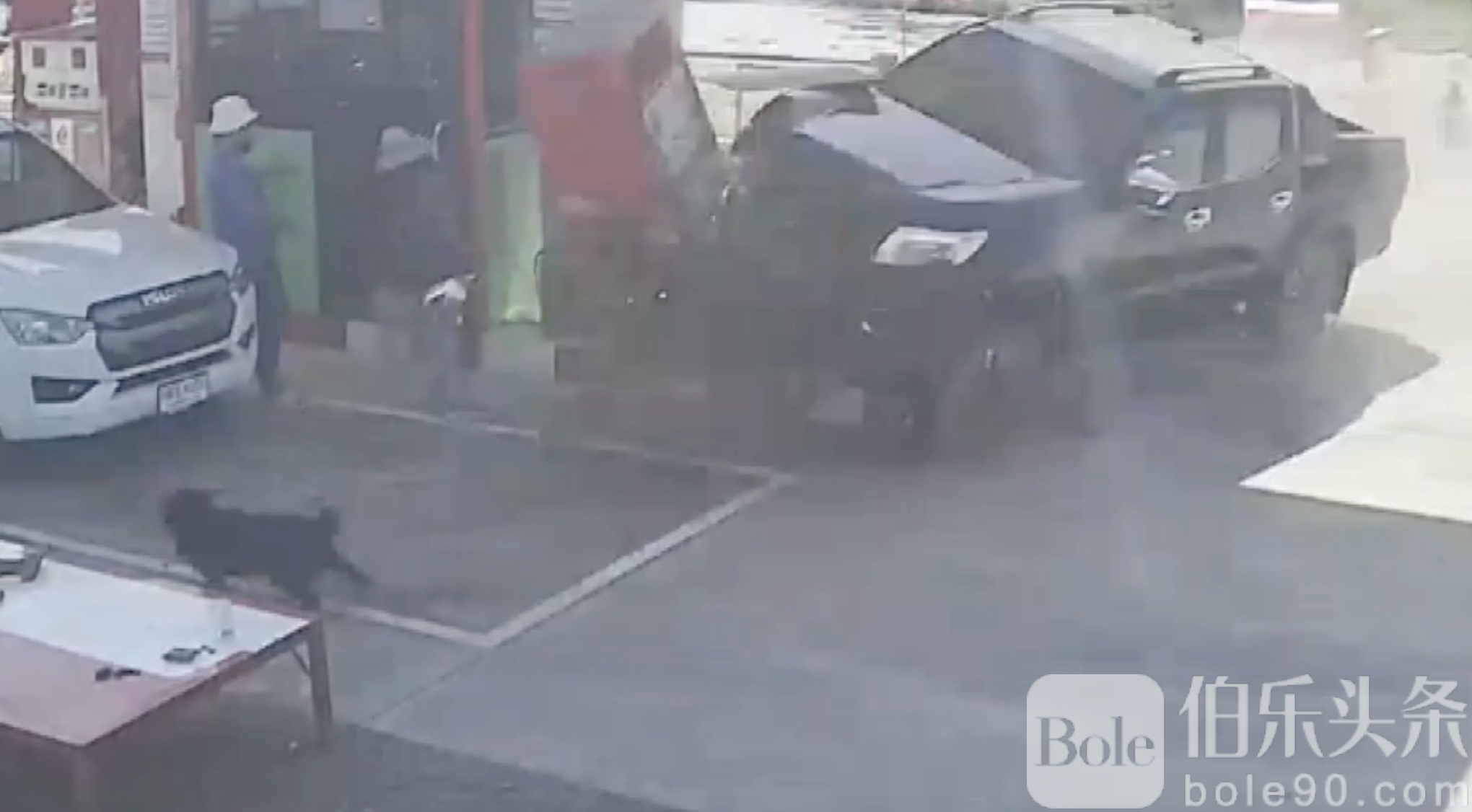 油站惊魂实录!泰国男子驾皮卡自杀式冲撞酿伤